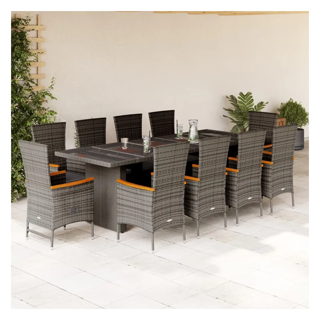 Ensemble à manger de jardin 11pcs avec coussins gris poly rotin