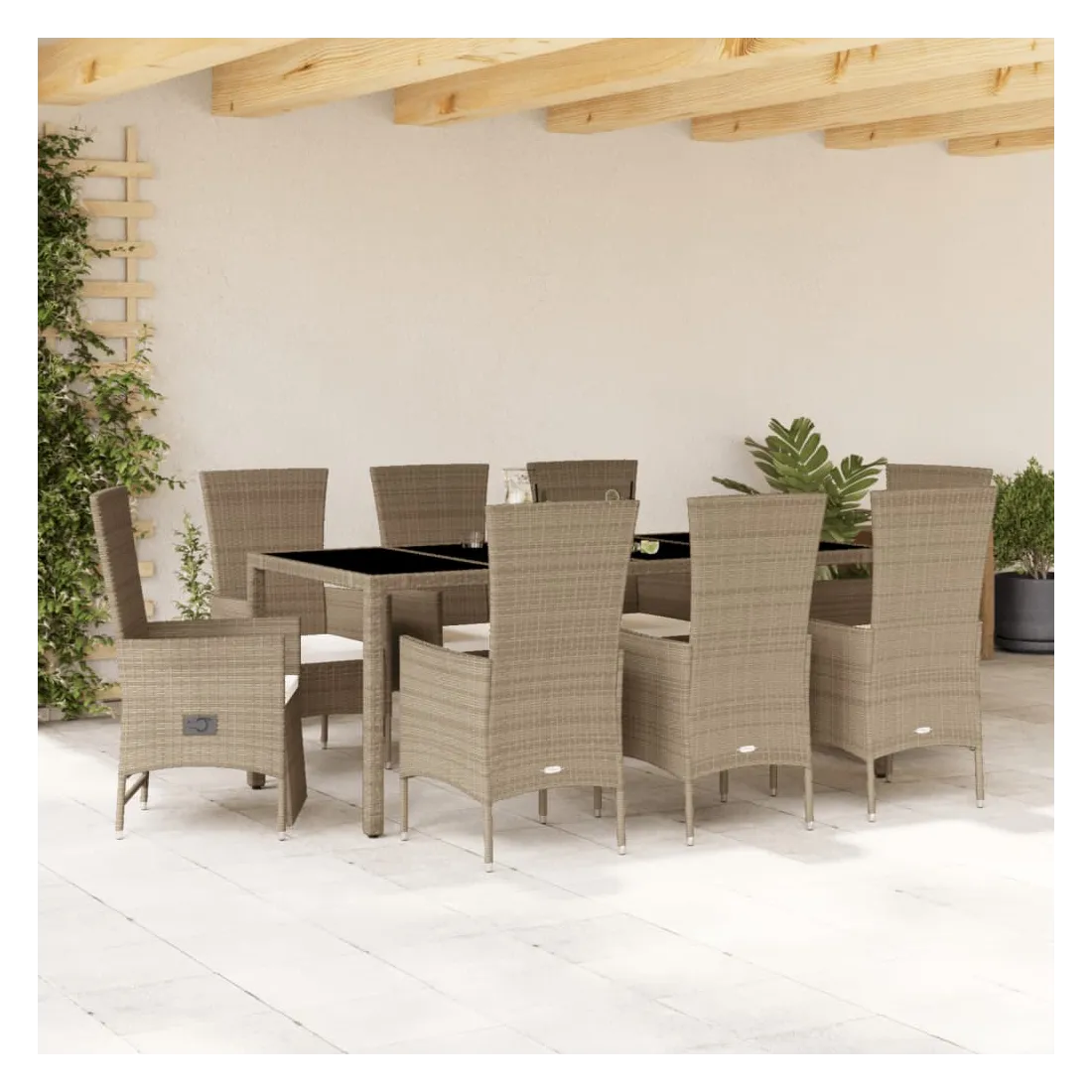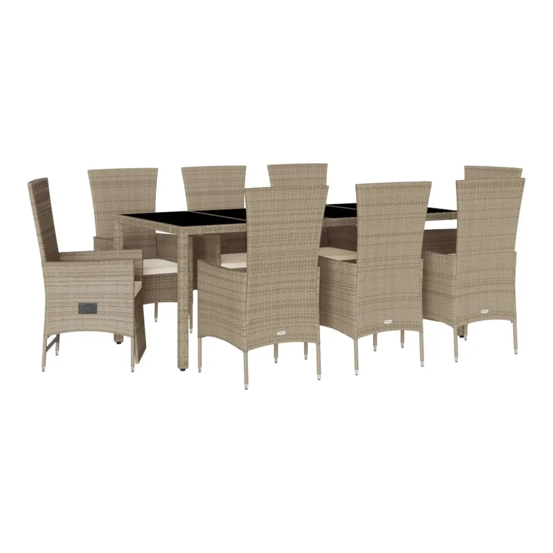 Ensemble à manger de jardin et coussins 9 pcs beige Poly rotin