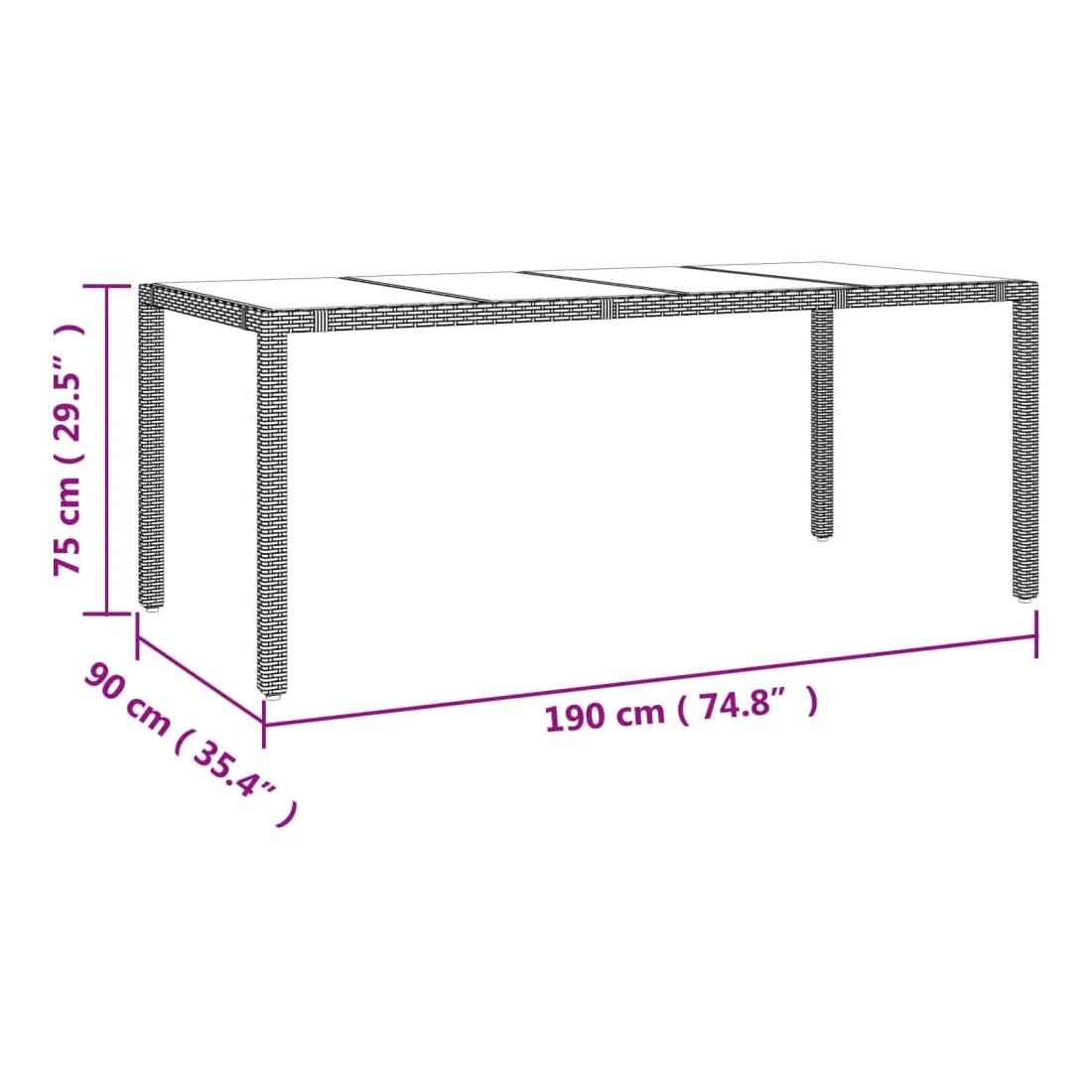 vidaXLCet ensemble de salle à manger de jardin est un excellent choix pour les repas en plein air ou simplement pour se détendre dans le jardin, la cour arrière ou sur la terrasse. Matériau durable : le rotin PE, également appelé polyrotin, est un matériau synthétique solide et facile d'entretien qui ressemble au rotin naturel. Il est léger, facile à nettoyer et couramment utilisé pour les meubles d'extérieur en raison de sa durabilité et de sa résistance aux intempéries. Dossier et repose-pieds réglables : ce siège de jardin est équipé d'une poignée. Vous pouvez régler le dossier et le repose-pieds dans n'importe quelle position en tirant sur la poignée, puis les remettre rapidement dans leur position d'origine. Assise confortable : ce mobilier d'extérieur, doté de coussins épais et rembourrés, offre une assise confortable. Housse amovible et lavable : les coussins d'assise sont dotés de housses amovibles pour faciliter le lavage et l'entretien. Plateau en verre : Le plateau de la table d'extérieur est en verre trempé solide et durable, ce qui le rend facile à nettoyer avec un chiffon humide et ajoute une touche d'élégance à votre espace extérieur. Bon à savoir :Pour que votre mobilier d'extérieur reste beau, nous vous recommandons de le protéger avec une housse imperméable.