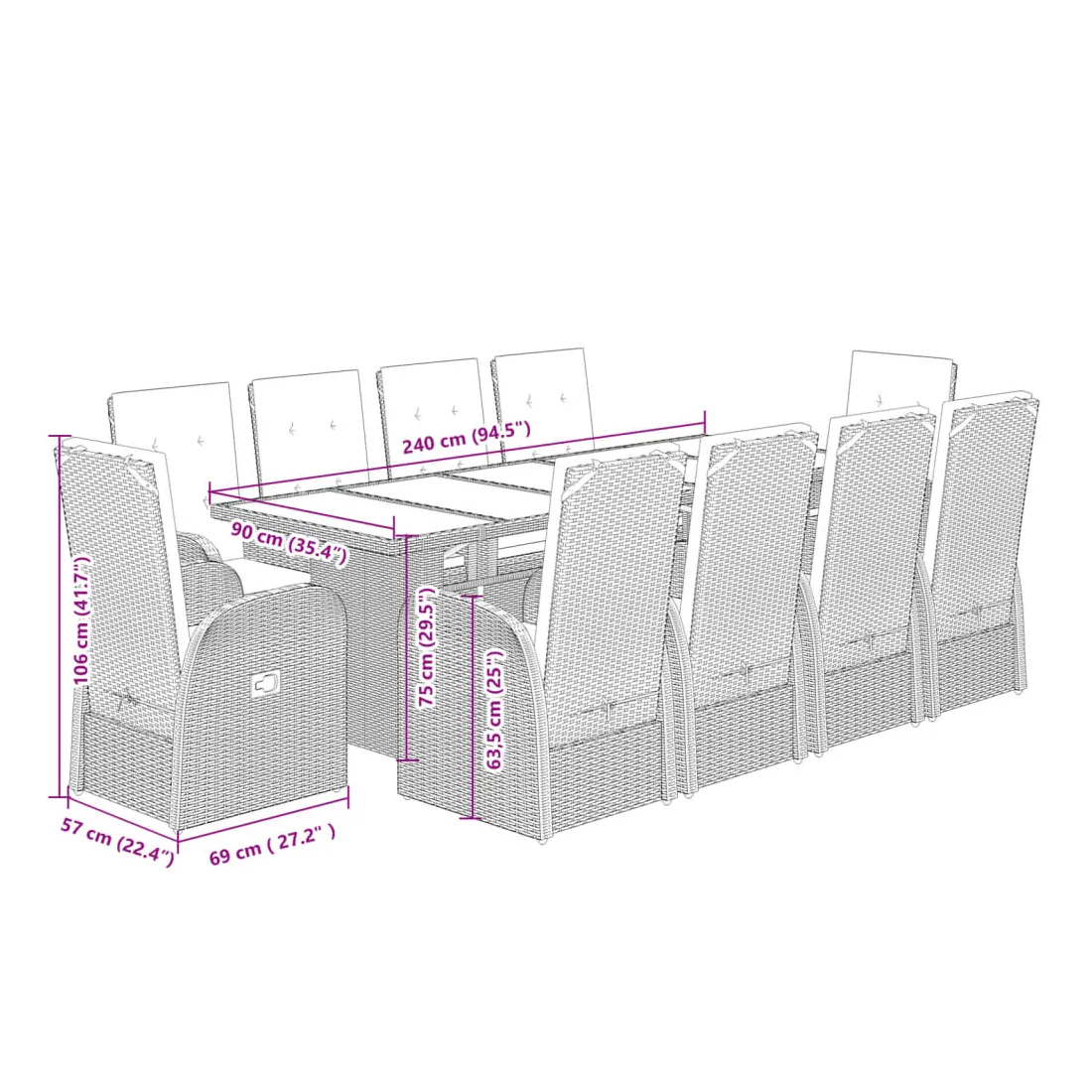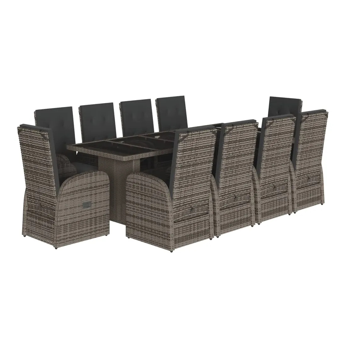 Ensemble à manger de jardin 11pcs avec coussins gris poly rotin