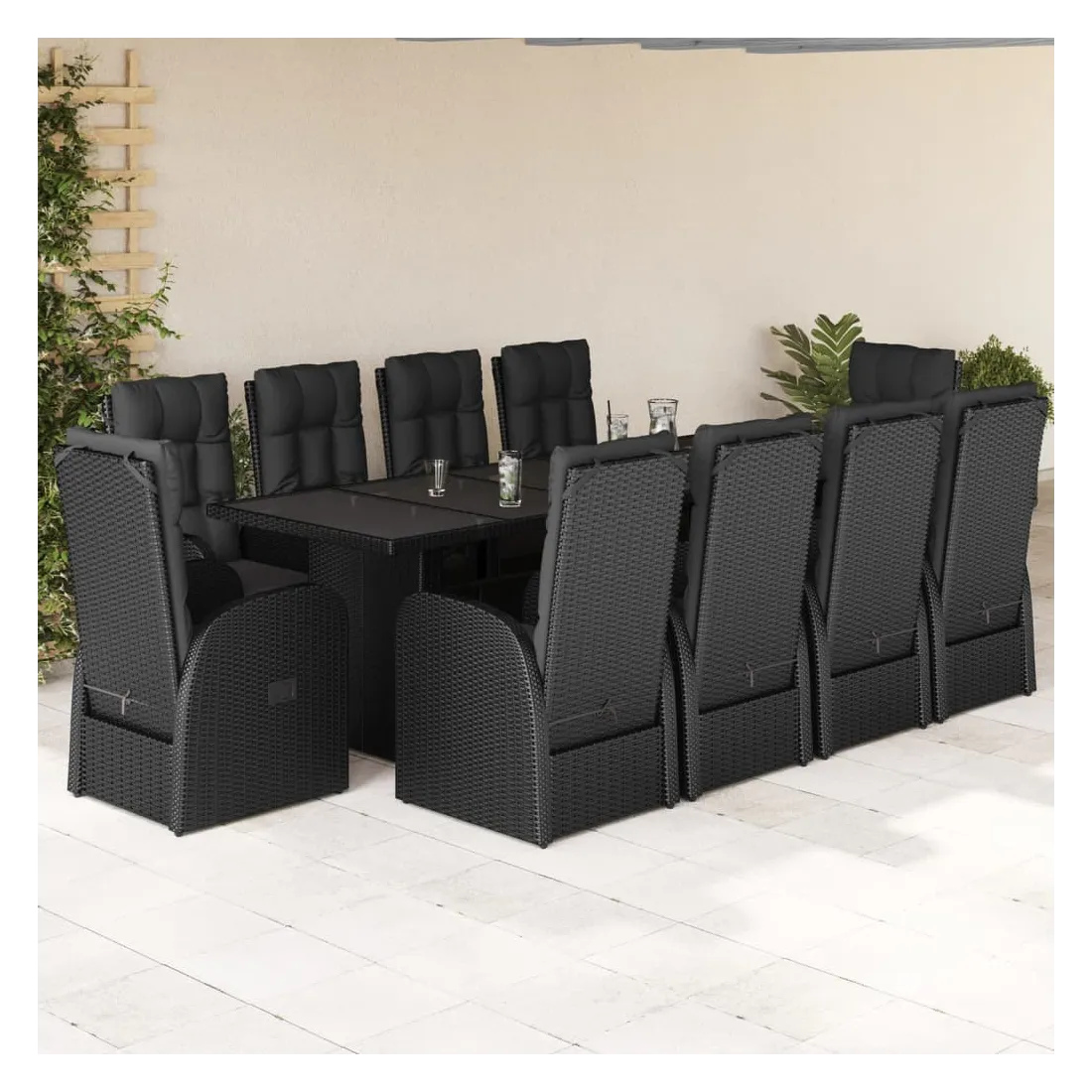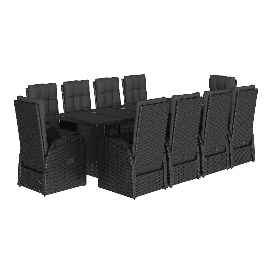 Ensemble à manger de jardin 11 pcs coussins noir résine tressée