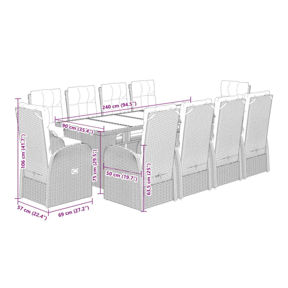 vidaXLCet ensemble de salle à manger de jardin est un excellent choix pour les repas en plein air ou pour vous détendre dans le jardin, dans l'arrière-cour ou sur la terrasse. Matériau durable : la résine tressée, également connue sous le nom de poly rotin, est un matériau synthétique solide et nécessitant peu d'entretien qui ressemble au rotin naturel. Il est léger, facile à nettoyer et couramment utilisé pour les meubles d'extérieur en raison de sa durabilité et de ses propriétés de résistance aux intempéries.Dossier réglable : ce siège de jardin est doté d'une poignée. Vous pouvez régler le dossier dans n'importe quelle position en tirant sur la poignée et le remettre rapidement dans sa position initiale.Expérience d'assise confortable : ce mobilier d'extérieur, doté de coussins épais, offre une expérience d'assise confortable.Housse amovible et lavable : ces coussins de siège sont dotés de housses amovibles pour un lavage et un entretien faciles.Dessus en verre : le dessus de la table d'extérieur est fabriqué en verre trempé solide et durable, ce qui le rend facile à nettoyer avec un chiffon humide et ajoute une touche d'élégance à votre espace extérieur. Bon à savoir :Pour que vos meubles d'extérieur restent beaux, nous vous recommandons de les protéger avec une housse imperméable.
