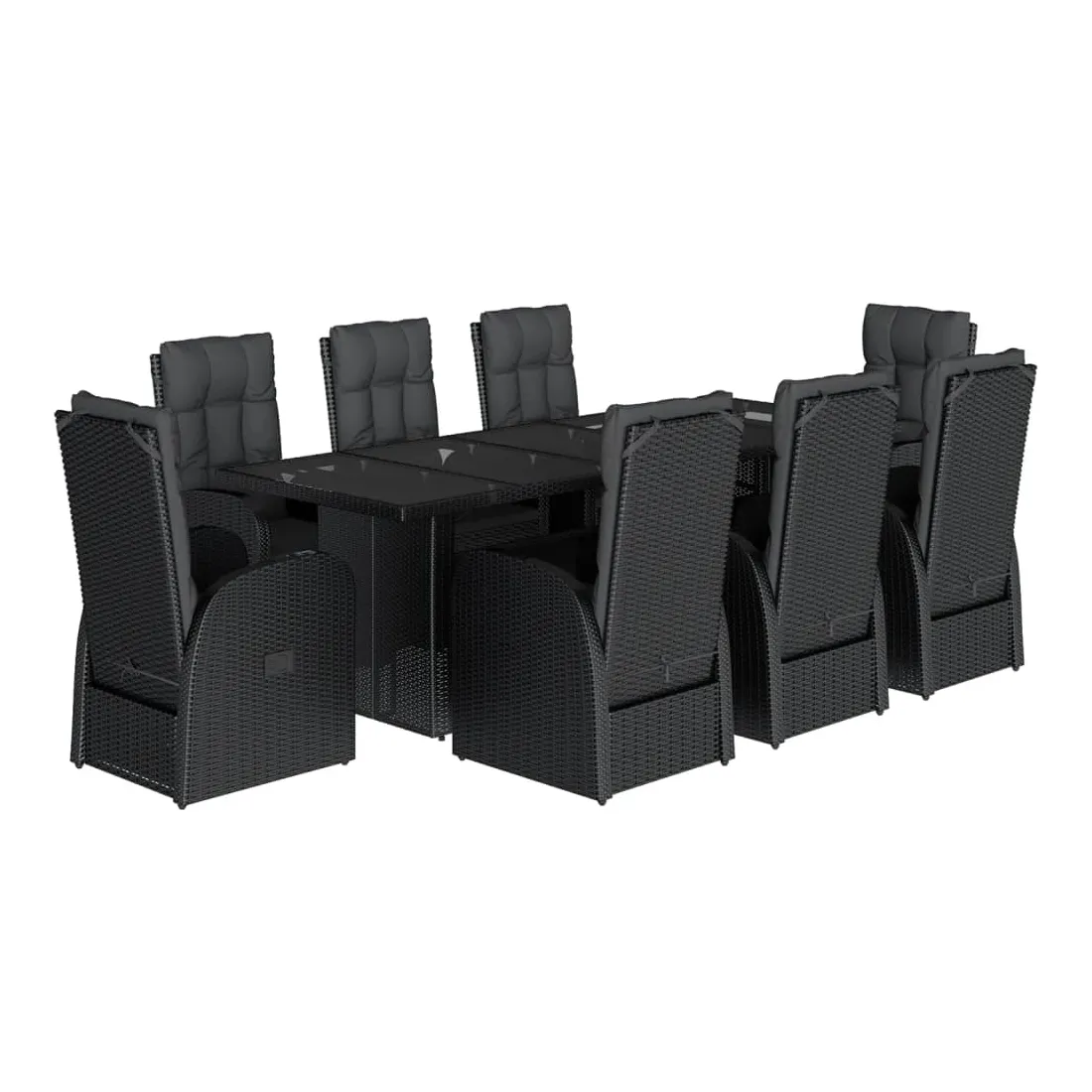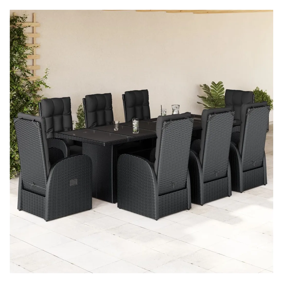 - Matériaux : Rotin PE, acier thermolaqué, verre trempé