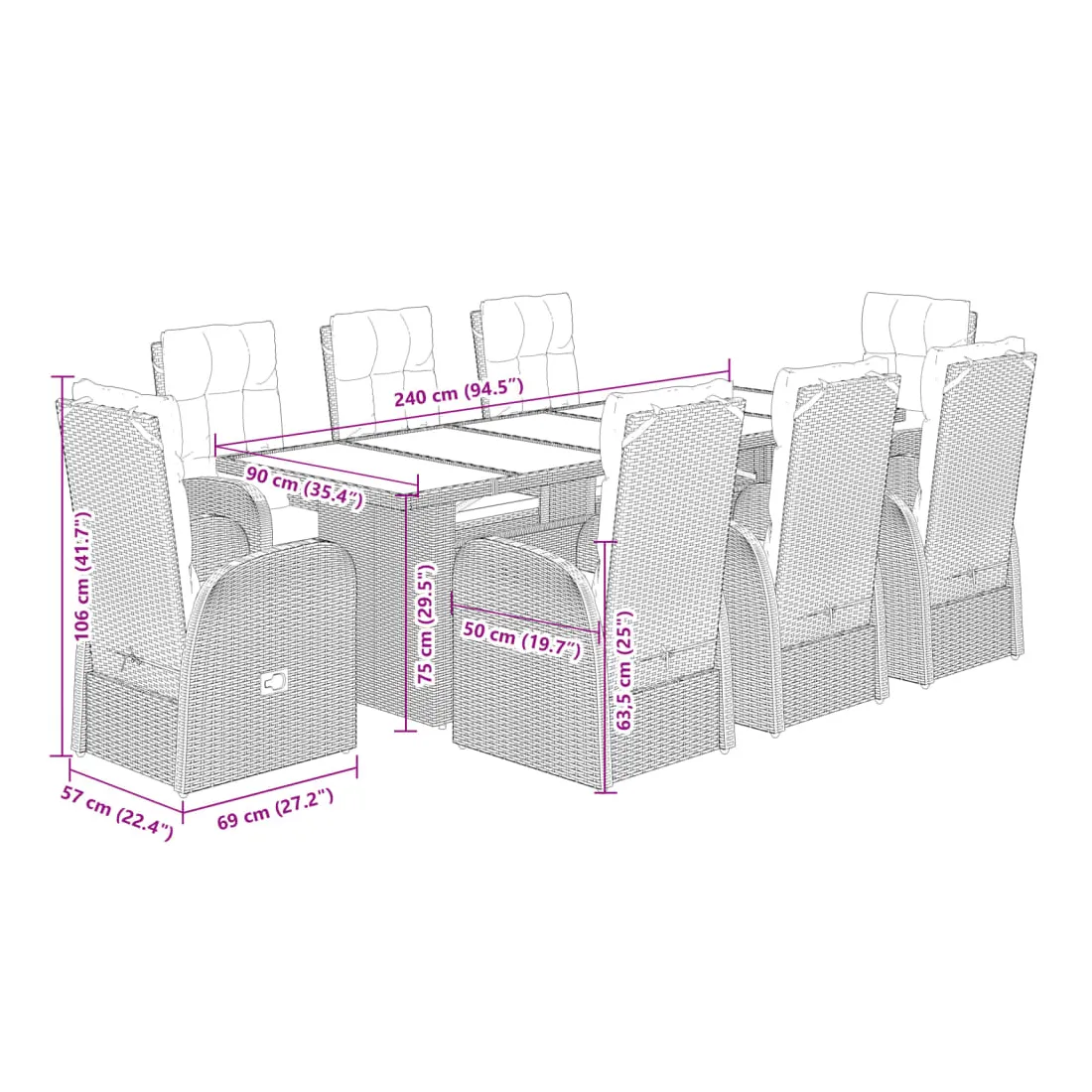 - Matériaux : Rotin PE, acier thermolaqué