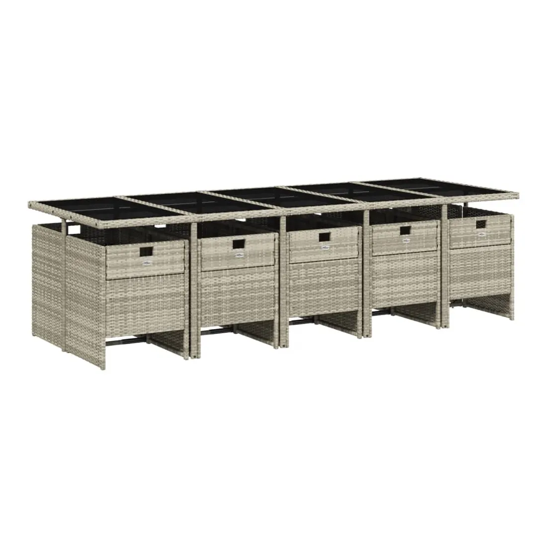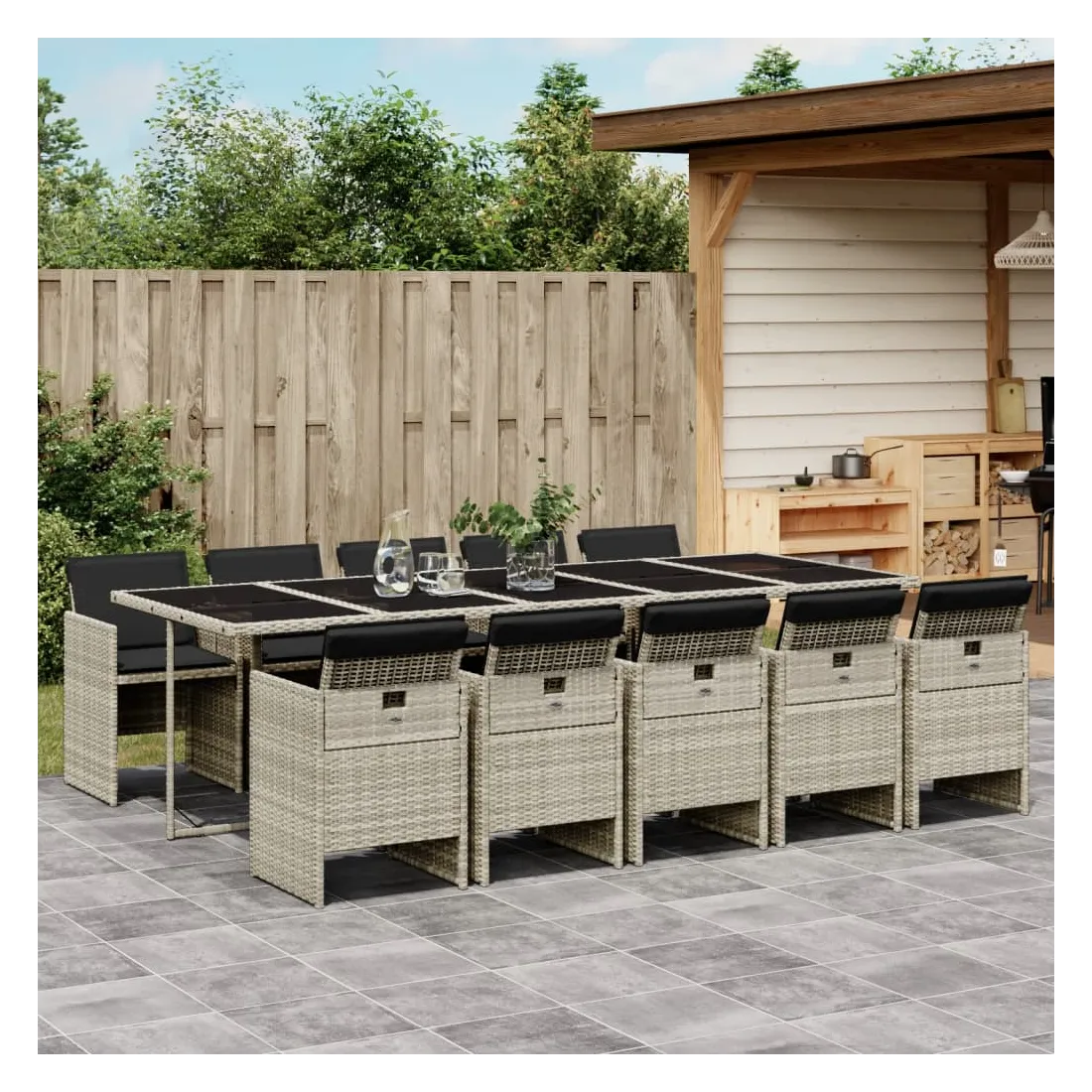 Ensemble à manger de jardin 11pcs avec coussins gris poly rotin
