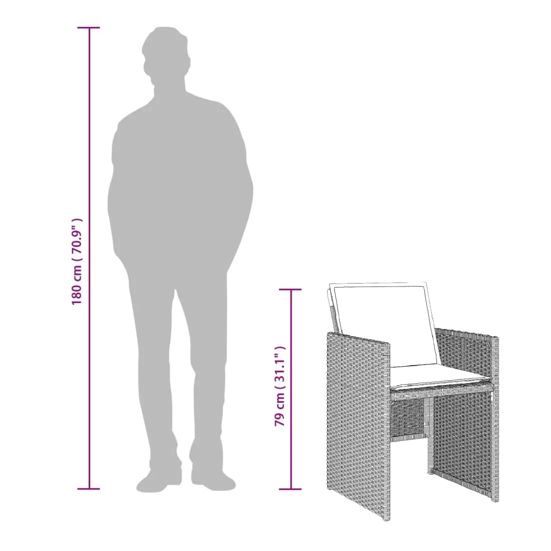 vidaXLCet ensemble de salle à manger de jardin est un excellent choix pour les repas en plein air ou pour vous détendre dans le jardin, dans l'arrière-cour ou sur la terrasse. Matériau durable : la résine tressée, également connue sous le nom de poly rotin, est un matériau synthétique solide et nécessitant peu d'entretien qui ressemble au rotin naturel. Il est léger, facile à nettoyer et couramment utilisé pour les meubles d'extérieur en raison de sa durabilité et de ses propriétés de résistance aux intempéries.Rangement compact : ces chaises sont dotées d'un dossier rabattable, ce qui permet de les ranger facilement sous la table. Une fois pliées, elles se rangent parfaitement sous la table, formant un cube peu encombrant. Expérience d'assise confortable : ce mobilier d'extérieur, doté de coussins épais, offre une expérience d'assise confortable.Housse amovible et lavable : ces coussins de siège sont dotés de housses amovibles pour un lavage et un entretien faciles.Dessus en verre : le dessus de la table d'extérieur est fabriqué en verre trempé solide et durable, ce qui le rend facile à nettoyer avec un chiffon humide et ajoute une touche d'élégance à votre espace extérieur. Bon à savoir : Pour que vos meubles d'extérieur restent beaux, nous vous recommandons de les protéger avec une housse imperméable.