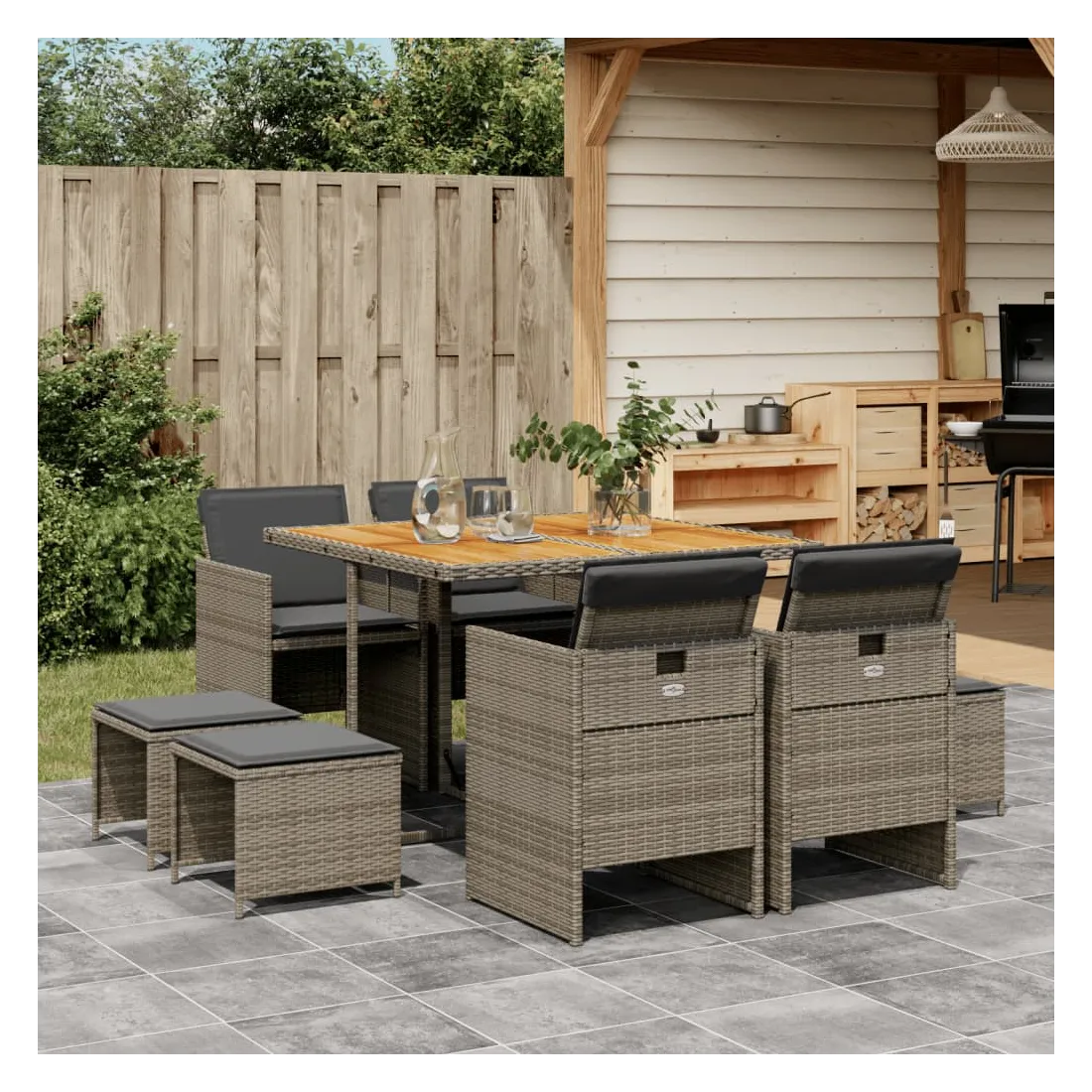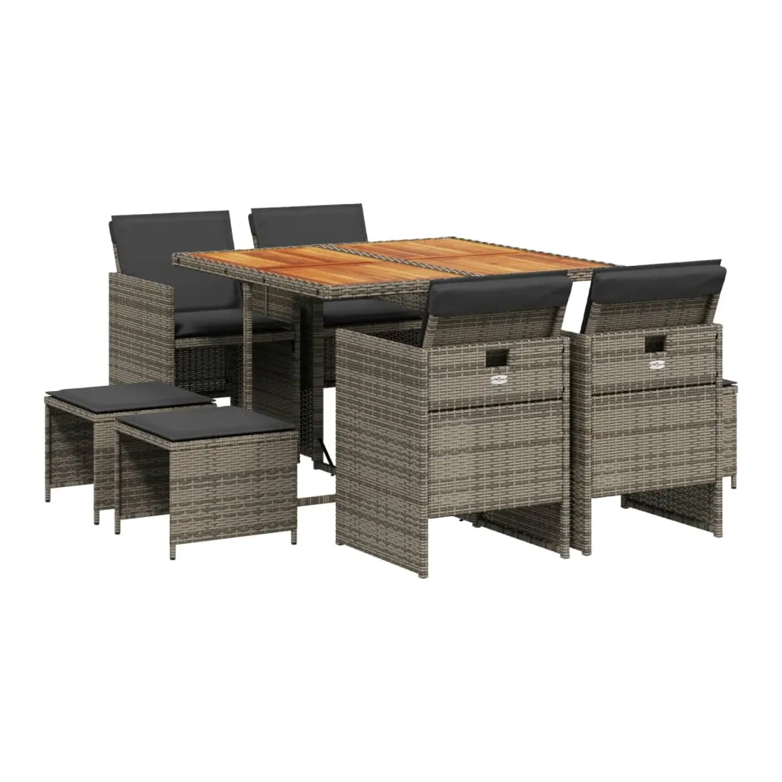 Ensemble à manger de jardin 9 pcs coussins gris résine tressée