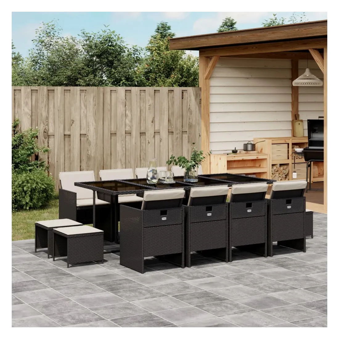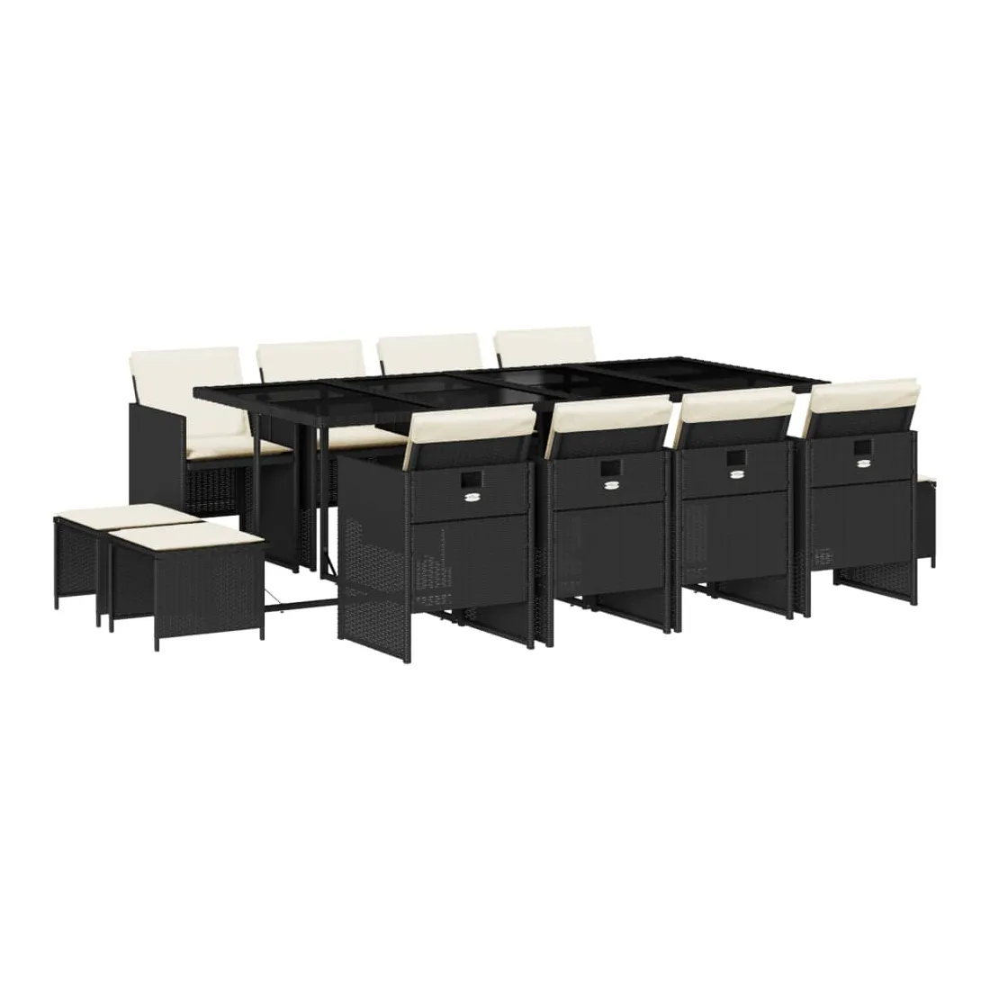 Ensemble à manger de jardin 13 pcs coussins noir résine tressée