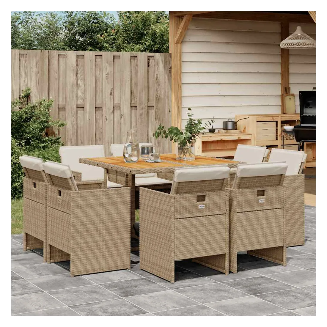 Ensemble à manger de jardin et coussins 9 pcs beige Poly rotin