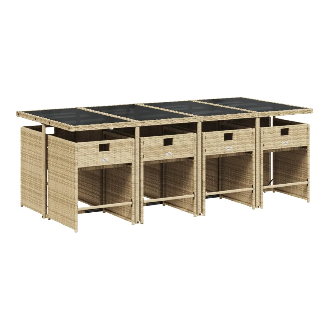 Ensemble à manger de jardin et coussins 9 pcs beige Poly rotin