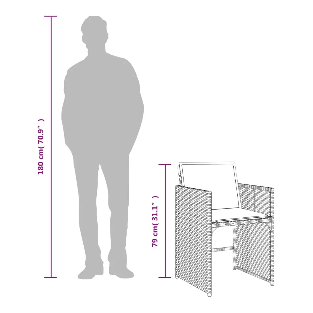 vidaXLCet ensemble de salle à manger de jardin est un excellent choix pour les repas en plein air ou pour vous détendre dans le jardin, dans l'arrière-cour ou sur la terrasse. Matériau durable : la résine tressée, également connue sous le nom de poly rotin, est un matériau synthétique solide et nécessitant peu d'entretien qui ressemble au rotin naturel. Il est léger, facile à nettoyer et couramment utilisé pour les meubles d'extérieur en raison de sa durabilité et de ses propriétés de résistance aux intempéries.Rangement compact : ces chaises sont dotées d'un dossier rabattable, ce qui permet de les ranger facilement sous la table. Une fois pliées, elles se rangent parfaitement sous la table, formant un cube peu encombrant.Expérience d'assise confortable : ce mobilier d'extérieur, doté de coussins épais, offre une expérience d'assise confortable.Housse amovible et lavable : ces coussins de siège sont dotés de housses amovibles pour un lavage et un entretien faciles. Les housses de coussin de chaise ont un rabat à l'arrière pour une fixation facile aux chaises.Dessus stable et facile à nettoyer : cette table de jardin est dotée d'un dessus en verre trempé robuste, durable et facile à nettoyer à l'aide d'un chiffon humide. Bon à savoir : Pour que vos meubles d'extérieur restent beaux, nous vous recommandons de les protéger avec une housse imperméable.