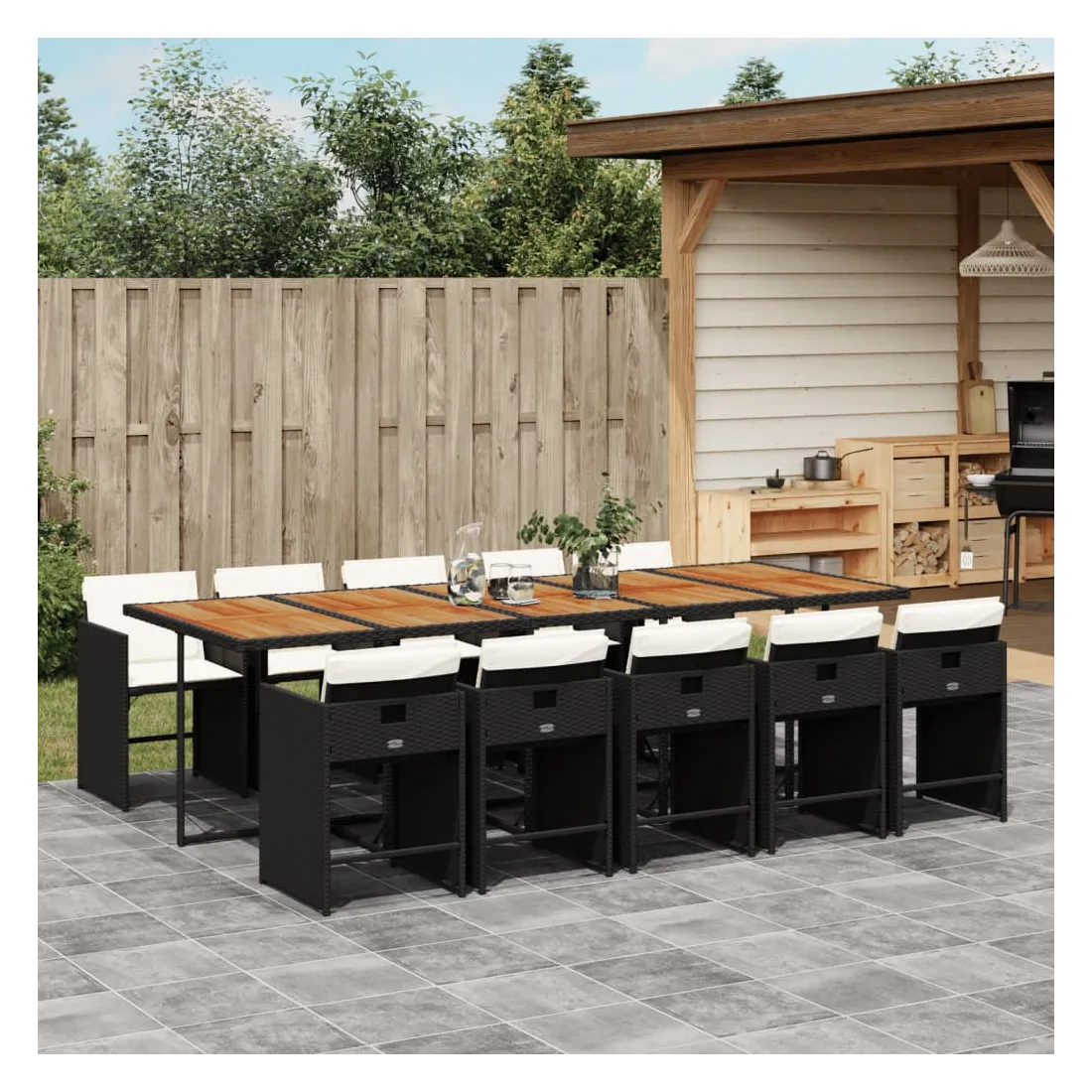 Ensemble à manger de jardin 11 pcs coussins noir résine tressée