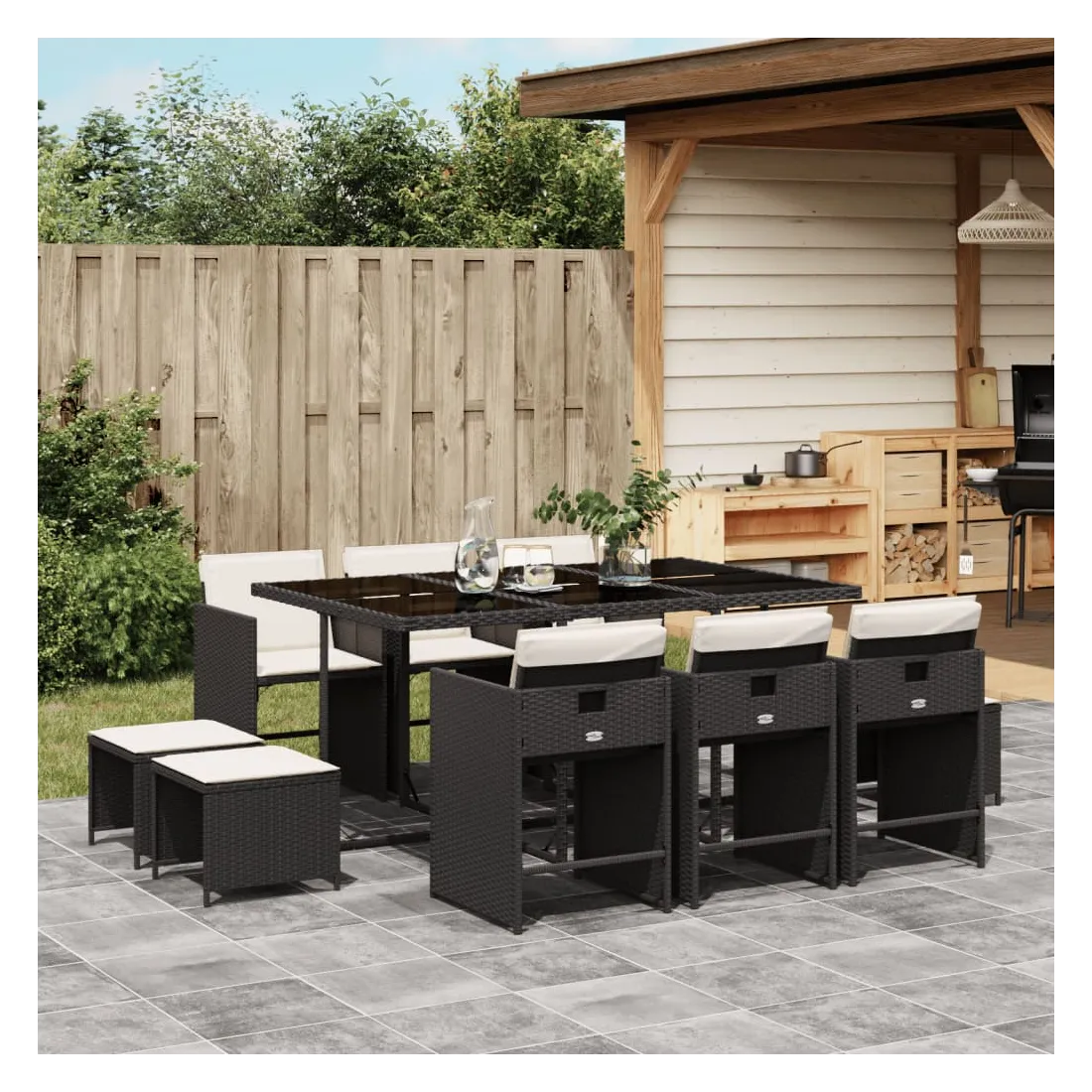Cet ensemble de salle à manger de jardin est un excellent choix pour les repas en plein air ou pour vous détendre dans le jardin, dans l'arrière-cour ou sur la terrasse. Matériau durable : la résine tressée, également connue sous le nom de poly rotin, est un matériau synthétique solide et nécessitant peu d'entretien qui ressemble au rotin naturel. Il est léger, facile à nettoyer et couramment utilisé pour les meubles d'extérieur en raison de sa durabilité et de ses propriétés de résistance aux intempéries.Rangement compact : ces chaises sont dotées d'un dossier rabattable, ce qui permet de les ranger facilement sous la table. Une fois pliées, elles se rangent parfaitement sous la table, formant un cube peu encombrant. De plus, les tabourets peuvent également être rangés sous les chaises, maximisant encore davantage l'efficacité de l'espace.Expérience d'assise confortable : ce mobilier d'extérieur, doté de coussins épais, offre une expérience d'assise confortable.Housse amovible et lavable : ces coussins de siège sont dotés de housses amovibles pour un lavage et un entretien faciles. Les housses de coussin de chaise ont un rabat à l'arrière pour une fixation facile aux chaises.Dessus stable et facile à nettoyer : cette table de jardin est dotée d'un dessus en verre trempé robuste, durable et facile à nettoyer à l'aide d'un chiffon humide. Bon à savoir : Pour que vos meubles d'extérieur restent beaux, nous vous recommandons de les protéger avec une housse imperméable.