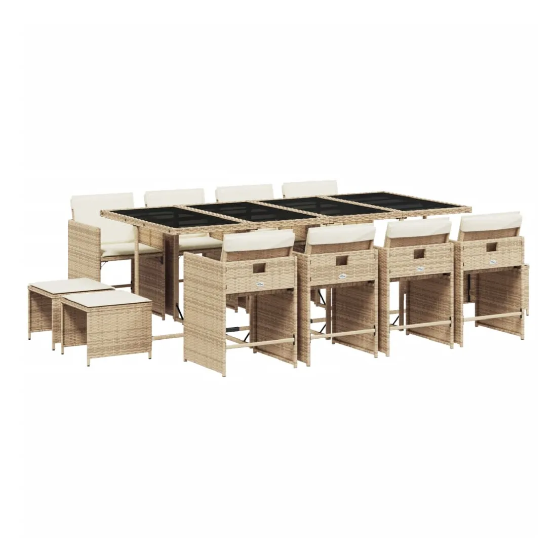 Cet ensemble de salle à manger de jardin est un excellent choix pour les repas en plein air ou pour vous détendre dans le jardin, dans l'arrière-cour ou sur la terrasse. Matériau durable : la résine tressée, également connue sous le nom de poly rotin, est un matériau synthétique solide et nécessitant peu d'entretien qui ressemble au rotin naturel. Il est léger, facile à nettoyer et couramment utilisé pour les meubles d'extérieur en raison de sa durabilité et de ses propriétés de résistance aux intempéries.Rangement compact : ces chaises sont dotées d'un dossier rabattable, ce qui permet de les ranger facilement sous la table. Une fois pliées, elles se rangent parfaitement sous la table, formant un cube peu encombrant. De plus, les tabourets peuvent également être rangés sous les chaises, maximisant encore davantage l'efficacité de l'espace.Expérience d'assise confortable : ce mobilier d'extérieur, doté de coussins épais, offre une expérience d'assise confortable.Housse amovible et lavable : ces coussins de siège sont dotés de housses amovibles pour un lavage et un entretien faciles. Les housses de coussin de chaise ont un rabat à l'arrière pour une fixation facile aux chaises.Dessus stable et facile à nettoyer : cette table de jardin est dotée d'un dessus en verre trempé robuste, durable et facile à nettoyer à l'aide d'un chiffon humide. Bon à savoir : Pour que vos meubles d'extérieur restent beaux, nous vous recommandons de les protéger avec une housse imperméable.