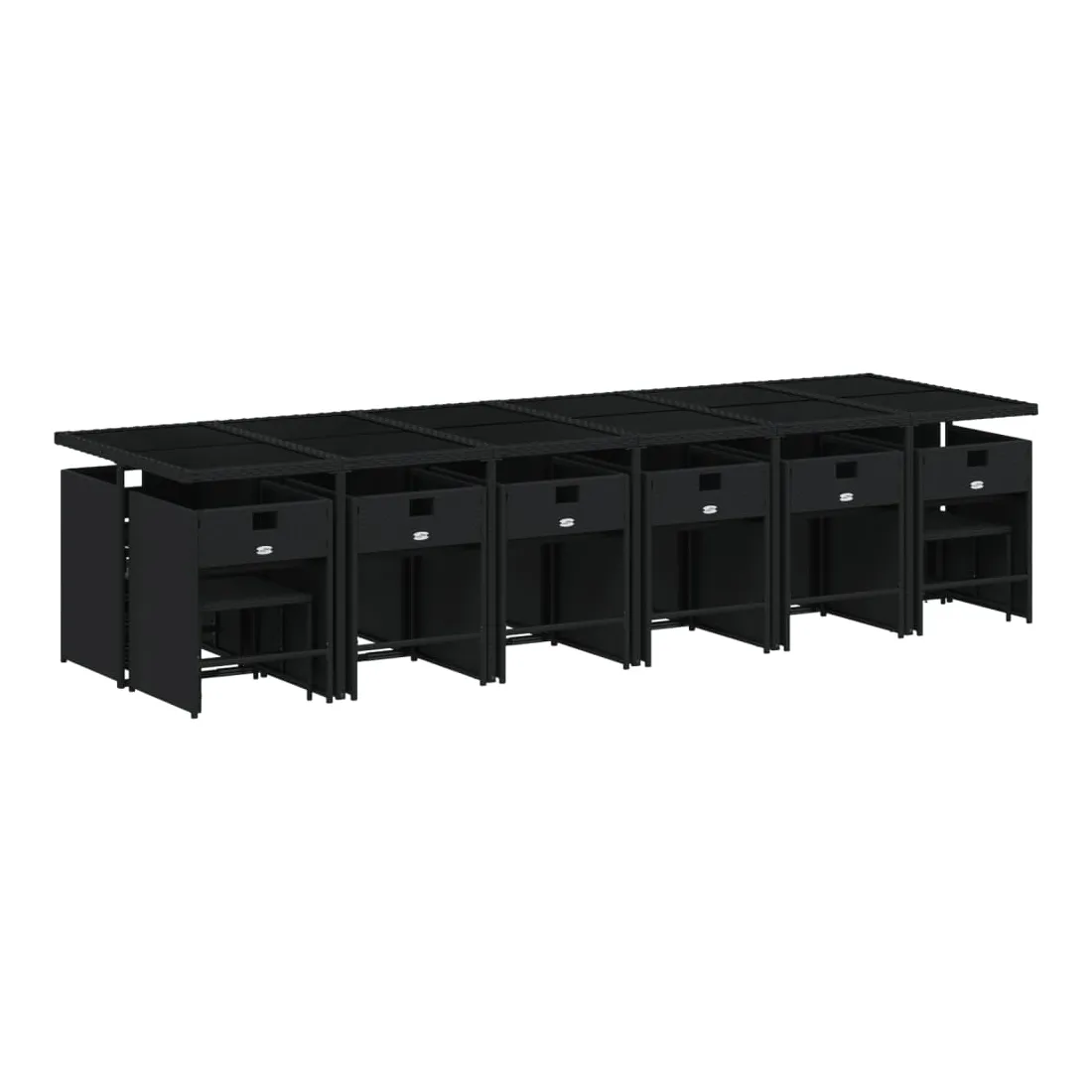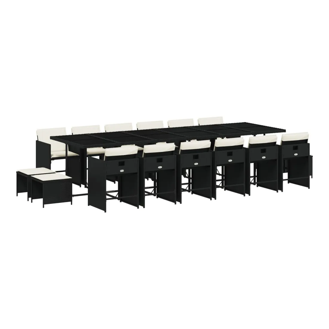 Ensemble à manger de jardin 17 pcs coussins noir résine tressée