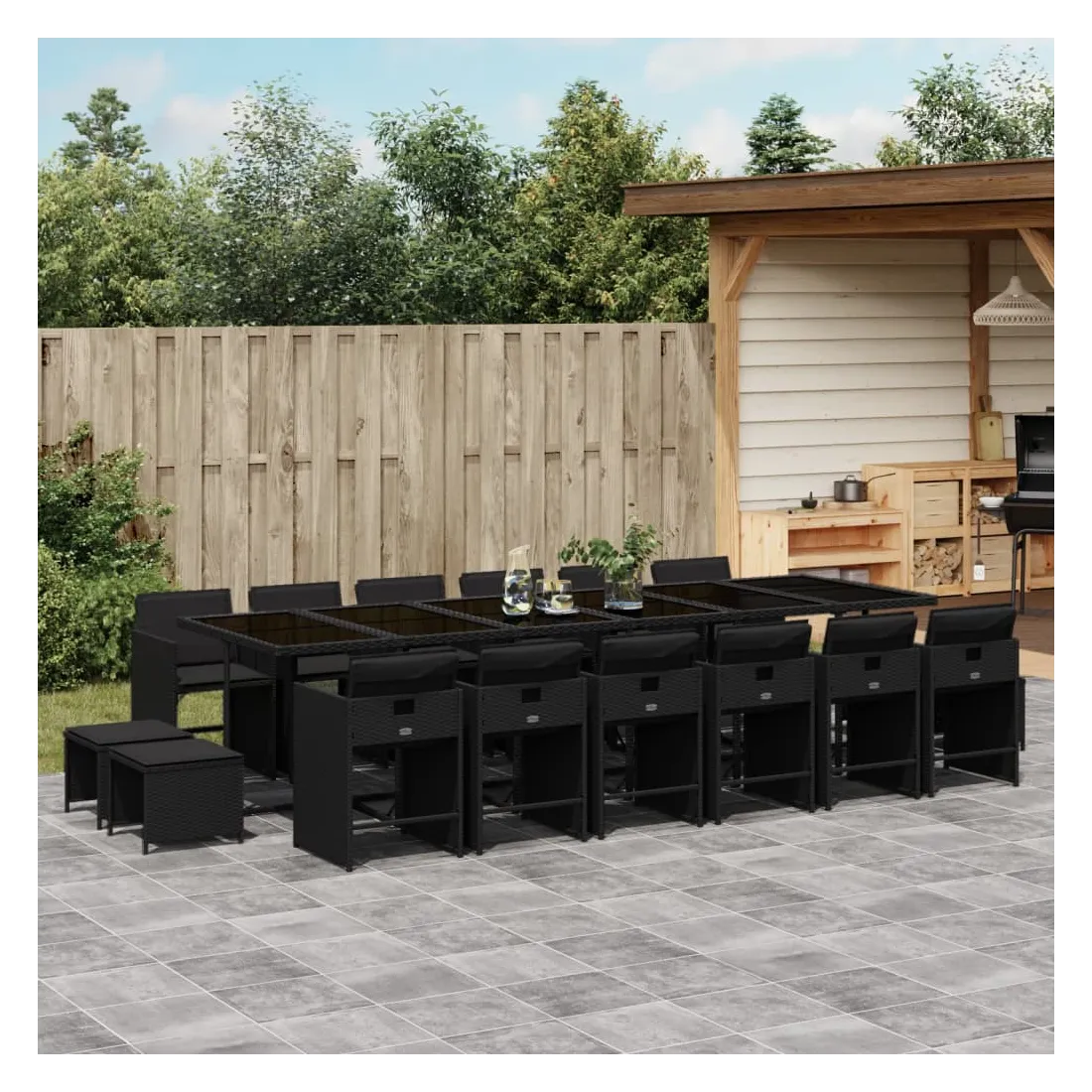 Ensemble à manger de jardin 17 pcs coussins noir résine tressée