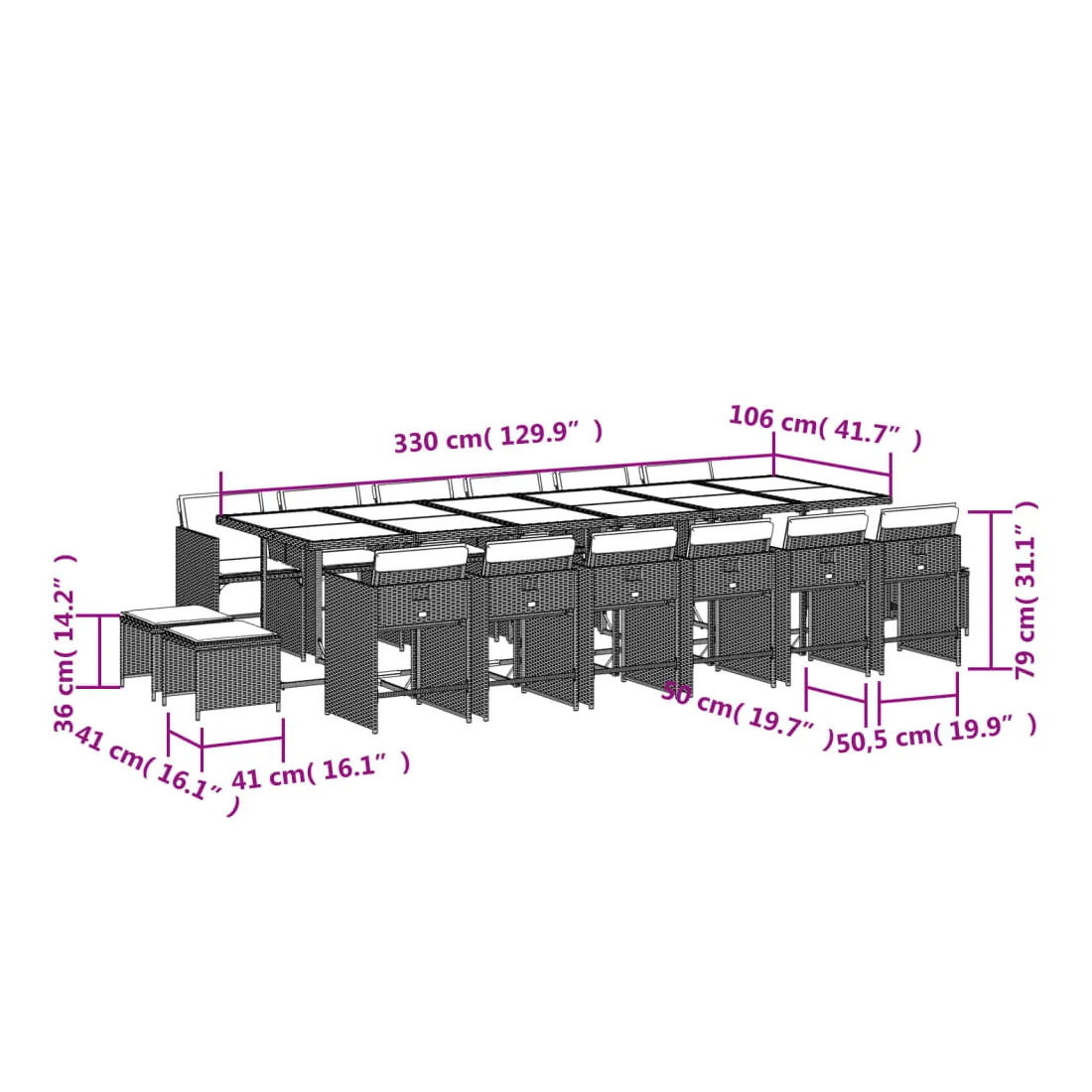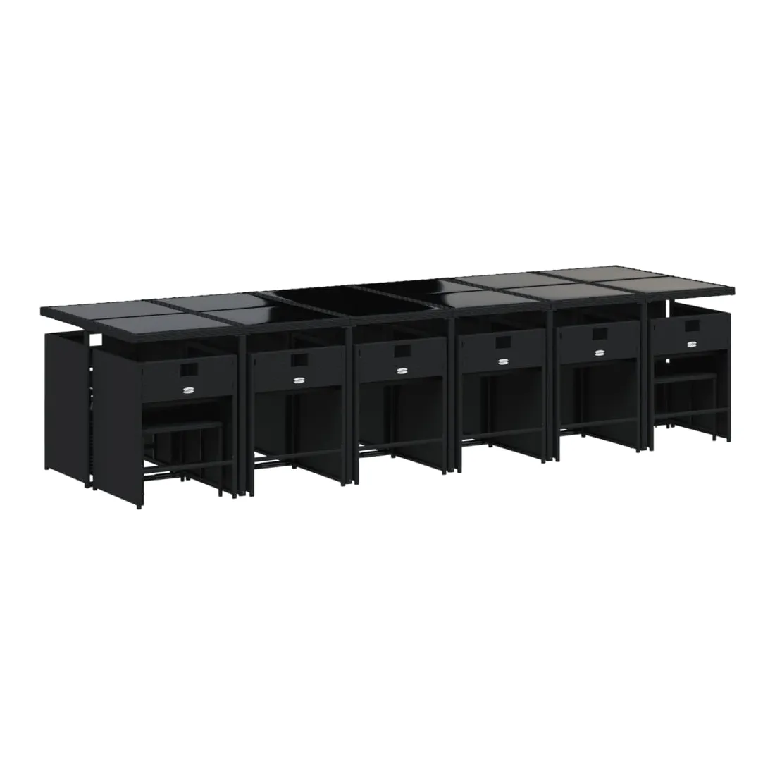 vidaXLCet ensemble de salle à manger de jardin est un excellent choix pour les repas en plein air ou pour vous détendre dans le jardin, dans l'arrière-cour ou sur la terrasse. Matériau durable : la résine tressée, également connue sous le nom de poly rotin, est un matériau synthétique solide et nécessitant peu d'entretien qui ressemble au rotin naturel. Il est léger, facile à nettoyer et couramment utilisé pour les meubles d'extérieur en raison de sa durabilité et de ses propriétés de résistance aux intempéries.Rangement compact : ces chaises sont dotées d'un dossier rabattable, ce qui permet de les ranger facilement sous la table. Une fois pliées, elles se rangent parfaitement sous la table, formant un cube peu encombrant. De plus, les tabourets peuvent également être rangés sous les chaises, maximisant encore davantage l'efficacité de l'espace.Expérience d'assise confortable : ce mobilier d'extérieur, doté de coussins épais, offre une expérience d'assise confortable.Housse amovible et lavable : ces coussins de siège sont dotés de housses amovibles pour un lavage et un entretien faciles. Les housses de coussin de chaise ont un rabat à l'arrière pour une fixation facile aux chaises.Dessus stable et facile à nettoyer : cette table de jardin est dotée d'un dessus en verre trempé robuste, durable et facile à nettoyer à l'aide d'un chiffon humide. Bon à savoir : Pour que vos meubles d'extérieur restent beaux, nous vous recommandons de les protéger avec une housse imperméable.