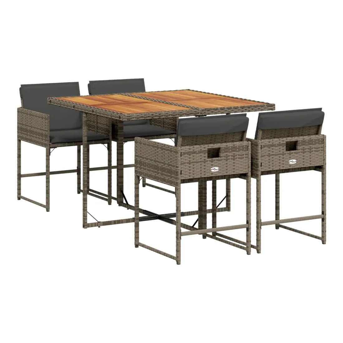 Cet ensemble de salle à manger de jardin est un excellent choix pour les repas en plein air ou pour vous détendre dans le jardin, dans l'arrière-cour ou sur la terrasse. Matériau durable : la résine tressée, également connue sous le nom de poly rotin, est un matériau synthétique solide et nécessitant peu d'entretien qui ressemble au rotin naturel. Il est léger, facile à nettoyer et couramment utilisé pour les meubles d'extérieur en raison de sa durabilité et de ses propriétés de résistance aux intempéries.Rangement compact : ces chaises sont dotées d'un dossier rabattable, ce qui permet de les ranger facilement sous la table. Une fois pliées, elles se rangent parfaitement sous la table, formant un cube peu encombrant.Expérience d'assise confortable : ce mobilier d'extérieur, doté de coussins épais, offre une expérience d'assise confortable.Housse amovible et lavable : ces coussins de siège sont dotés de housses amovibles pour un lavage et un entretien faciles. Les housses de coussin ont un rabat à l'arrière pour une fixation facile aux dossiers.Dessus stable et facile à nettoyer : cette table de jardin a un dessus en bois d'acacia robuste, durable et facile à nettoyer avec un chiffon humide. Bon à savoir :Pour que vos meubles d'extérieur restent beaux, nous vous recommandons de les protéger avec une housse imperméable.