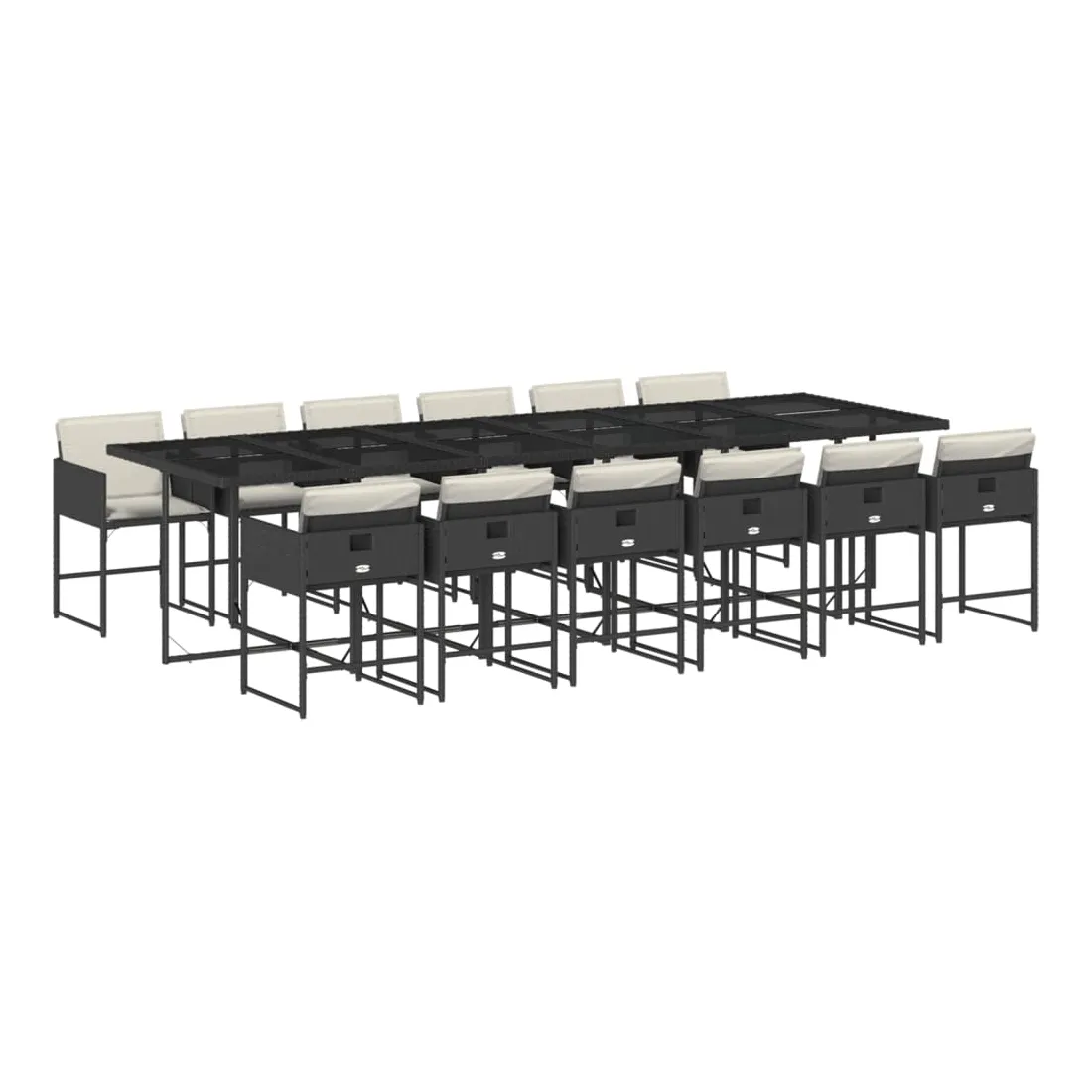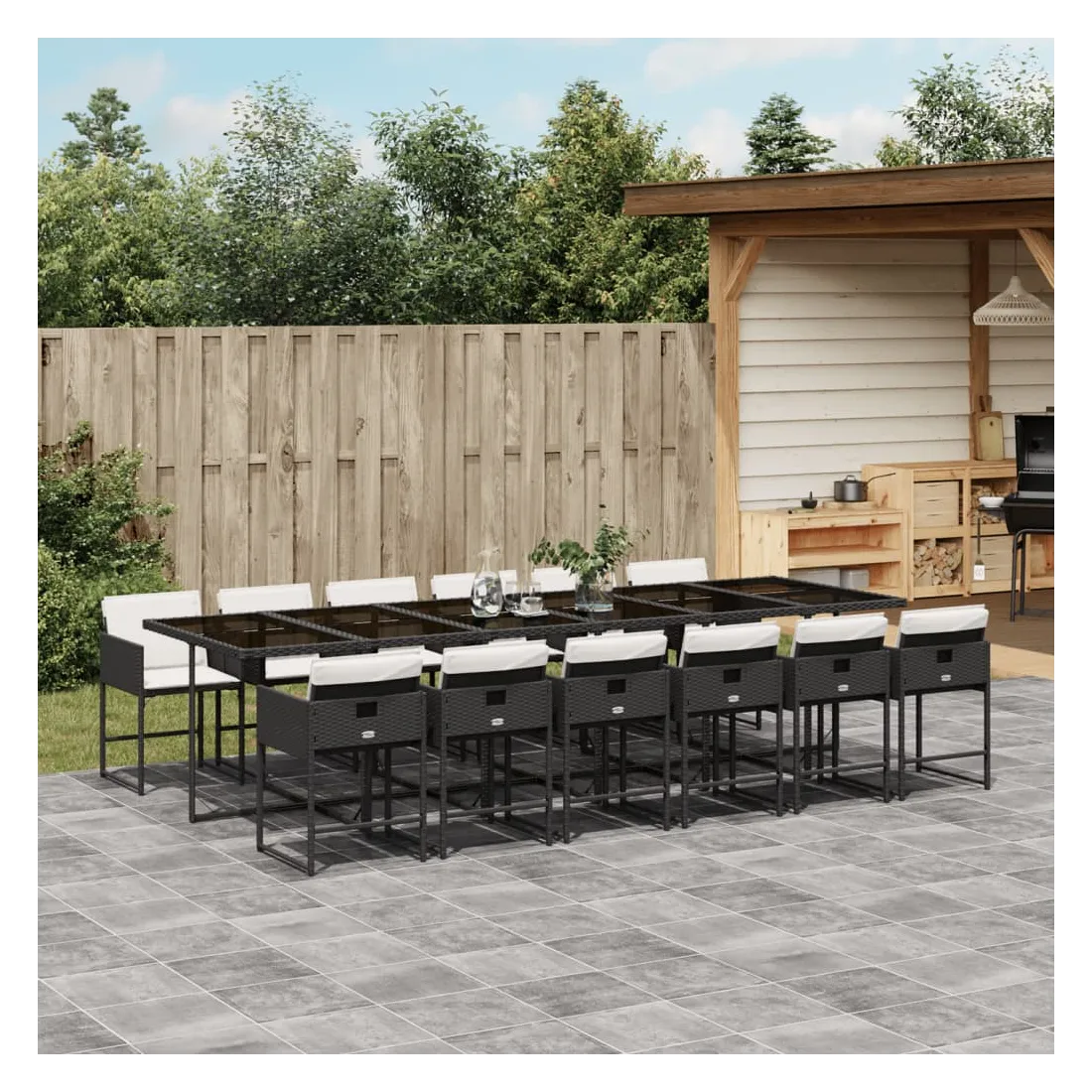 Ensemble à manger de jardin 13 pcs coussins noir résine tressée