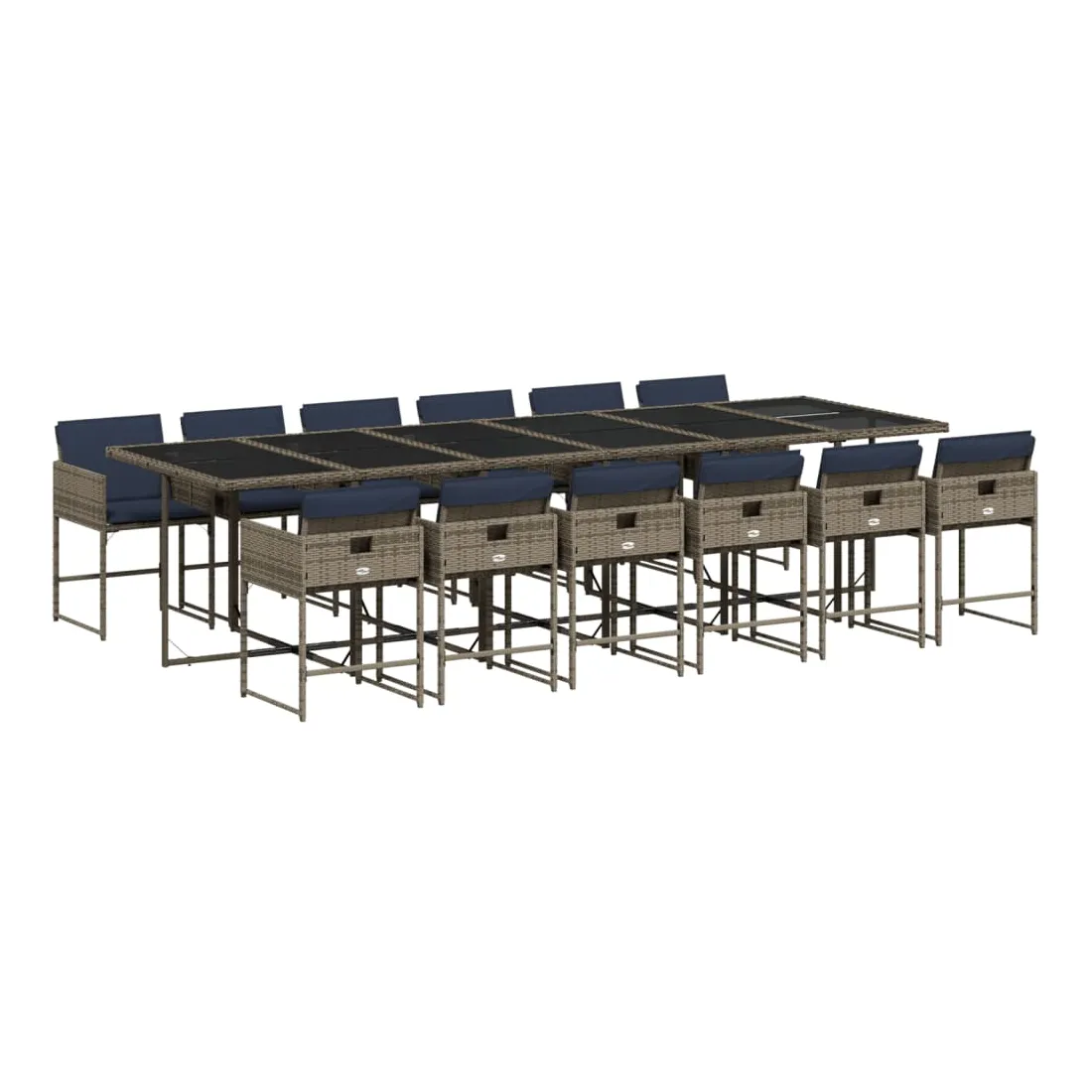 Ensemble à manger de jardin avec coussins 13 pcs résine tressée