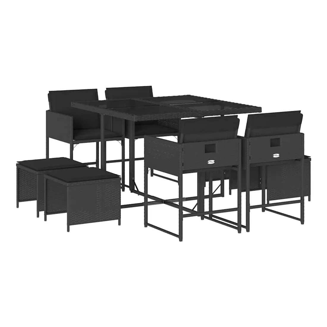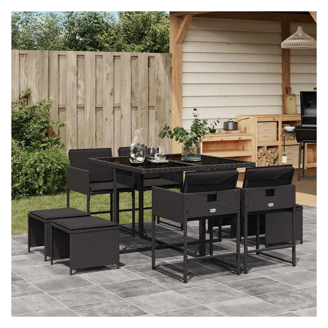 Cet ensemble de salle à manger de jardin est un excellent choix pour les repas en plein air ou pour vous détendre dans le jardin, dans l'arrière-cour ou sur la terrasse. Matériau durable : la résine tressée, également connue sous le nom de poly rotin, est un matériau synthétique solide et nécessitant peu d'entretien qui ressemble au rotin naturel. Il est léger, facile à nettoyer et couramment utilisé pour les meubles d'extérieur en raison de sa durabilité et de ses propriétés de résistance aux intempéries.Rangement compact : ces chaises sont dotées d'un dossier rabattable, ce qui permet de les ranger facilement sous la table. Une fois pliées, elles se rangent parfaitement sous la table, formant un cube peu encombrant. De plus, les tabourets peuvent également être rangés sous les chaises, maximisant encore davantage l'efficacité de l'espace.Expérience d'assise confortable : ce mobilier d'extérieur, doté de coussins épais, offre une expérience d'assise confortable.Housse amovible et lavable : ces coussins de siège sont dotés de housses amovibles pour un lavage et un entretien faciles. Les housses de coussin ont un rabat à l'arrière pour une fixation facile aux dossiers.Dessus en verre : le dessus de la table d'extérieur est fabriqué en verre trempé solide et durable, ce qui le rend facile à nettoyer avec un chiffon humide et ajoute une touche d'élégance à votre espace extérieur. Bon à savoir : Pour que vos meubles d'extérieur restent beaux, nous vous recommandons de les protéger avec une housse imperméable.