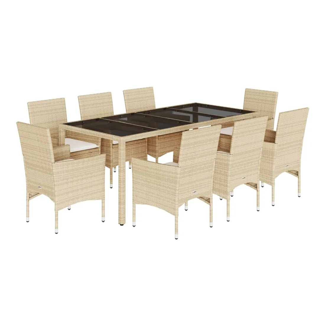 Ensemble à manger de jardin et coussins 9 pcs beige rotin verre