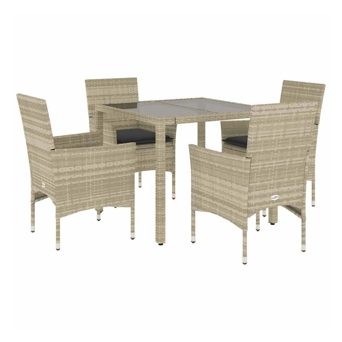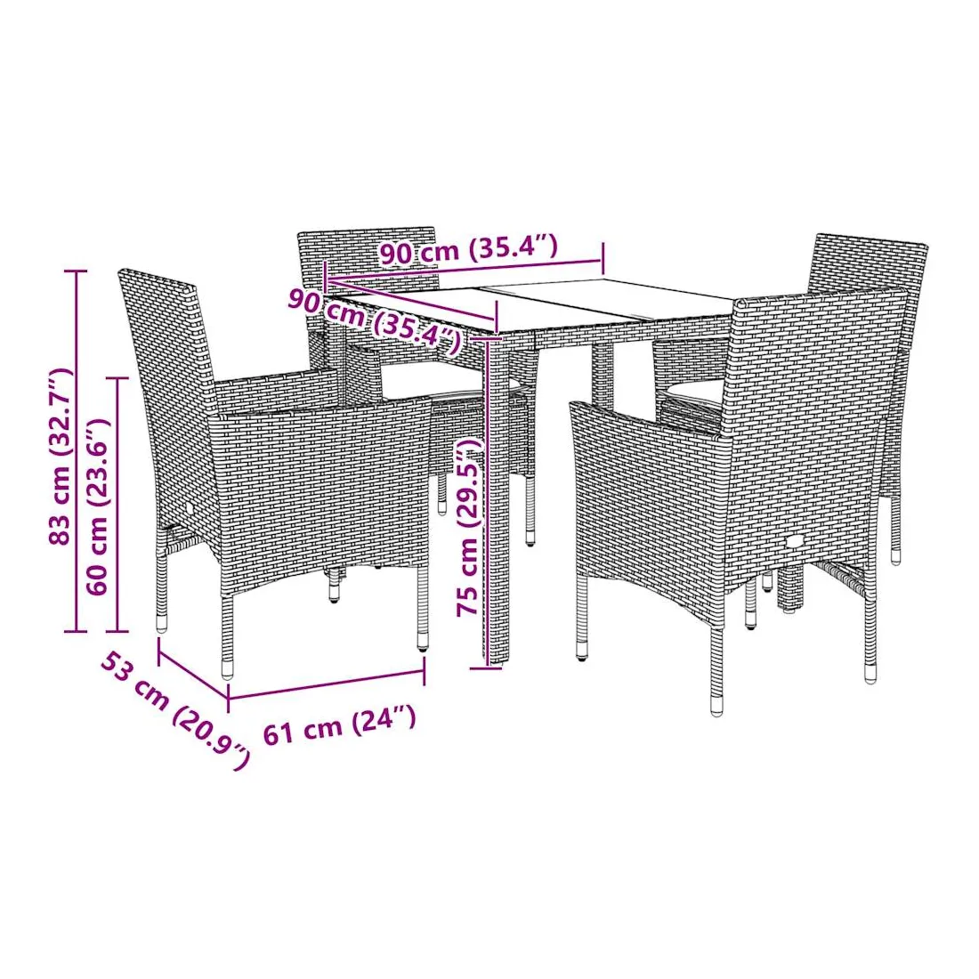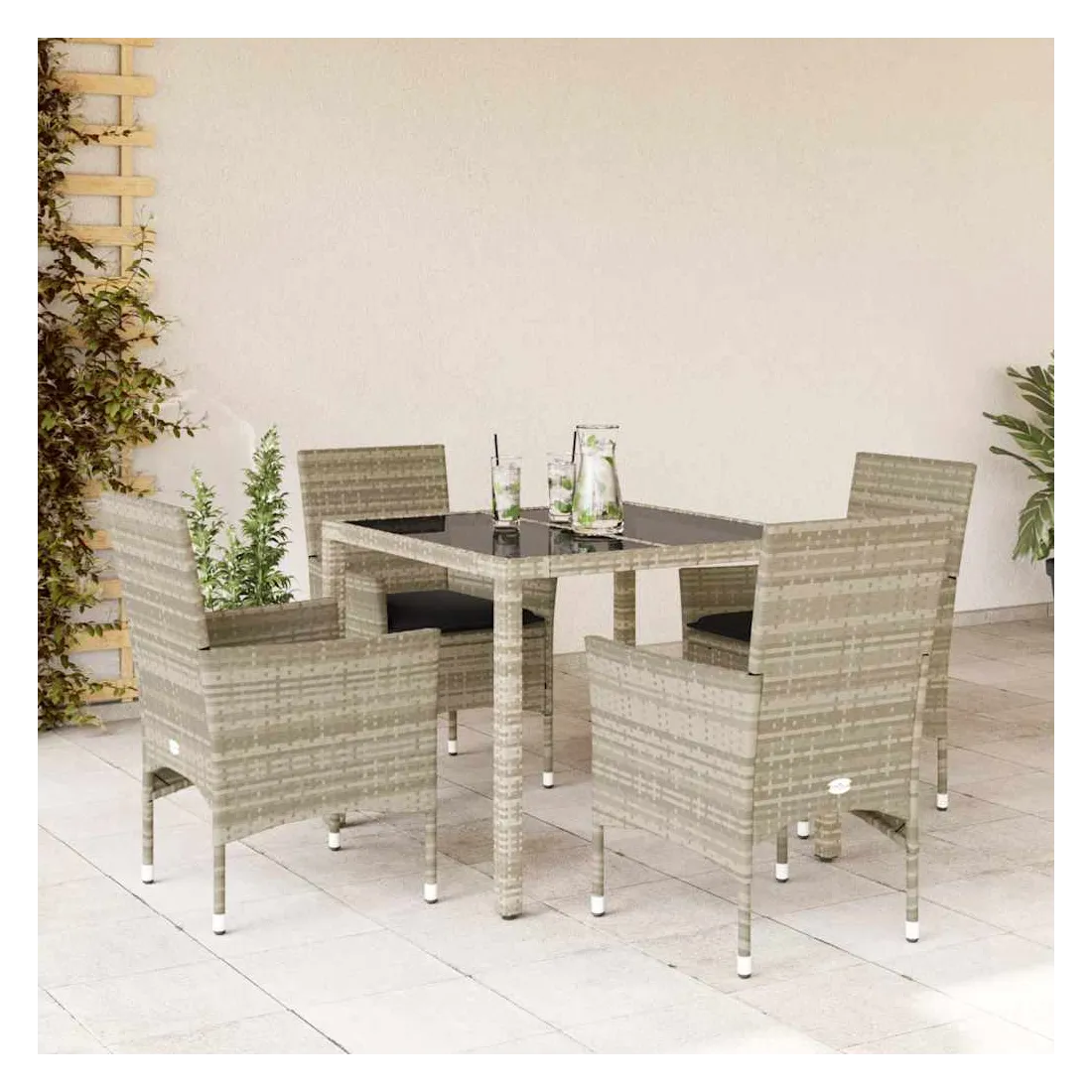 Cet ensemble de salle à manger de jardin est un excellent choix pour les repas en plein air ou pour vous détendre dans le jardin, dans l'arrière-cour ou sur la terrasse. Matériau durable : la résine tressée, également connue sous le nom de poly rotin, est un matériau synthétique solide et nécessitant peu d'entretien qui ressemble au rotin naturel. Il est léger, facile à nettoyer et couramment utilisé pour les meubles d'extérieur en raison de sa durabilité et de ses propriétés de résistance aux intempéries.Expérience d'assise confortable : cet ensemble de meubles d'extérieur, doté de coussins épais, offre une expérience d'assise confortable.Housse amovible et lavable : ces coussins de siège sont dotés de housses amovibles pour un lavage et un entretien faciles.Dessus en verre : le dessus de la table d'extérieur est fabriqué en verre trempé solide et durable, ce qui le rend facile à nettoyer avec un chiffon humide et ajoute une touche d'élégance à votre espace extérieur. Bon à savoir :Pour que vos meubles d'extérieur restent beaux, nous vous recommandons de les protéger avec une housse imperméable.