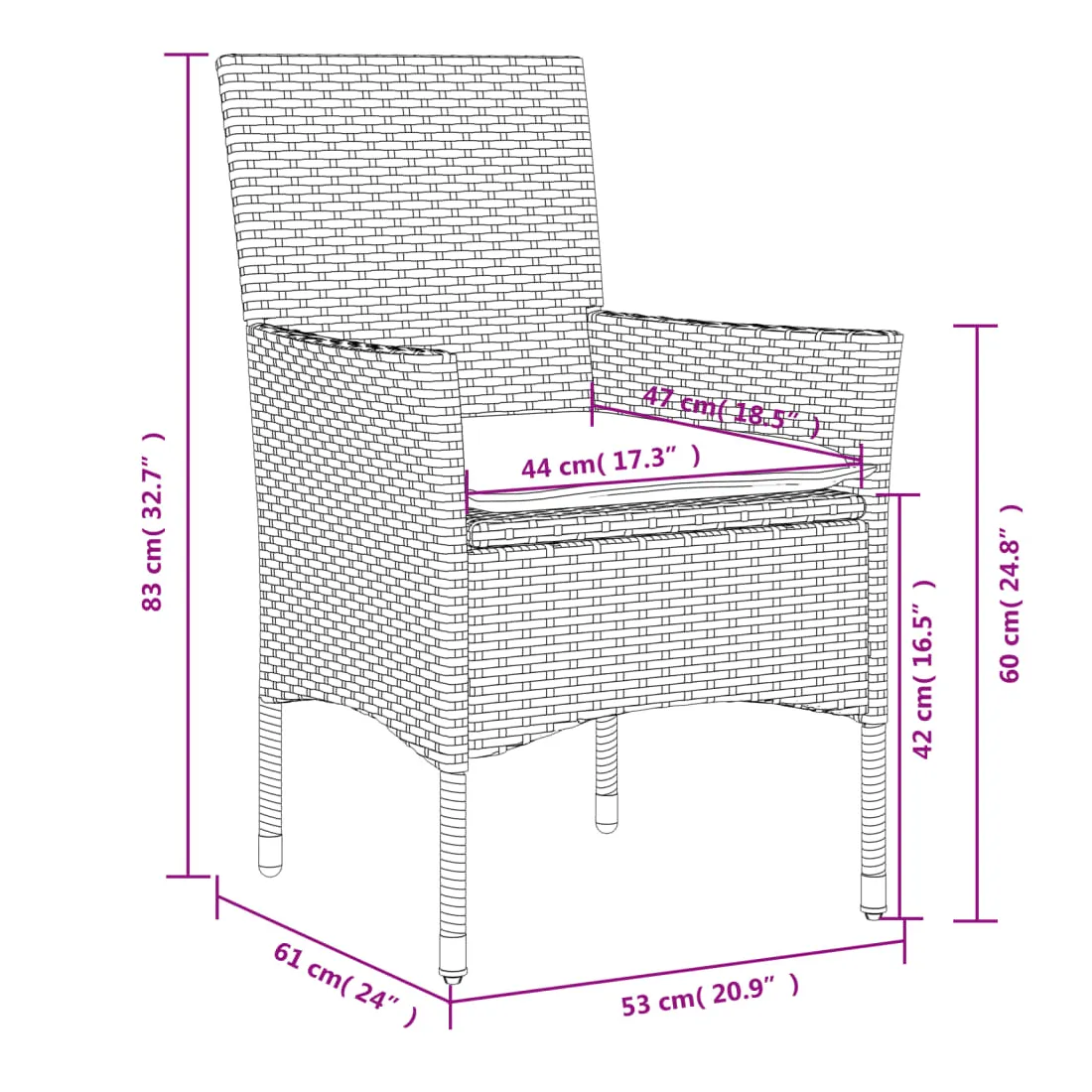 Cet ensemble de salle à manger de jardin est un excellent choix pour les repas en plein air ou pour vous détendre dans le jardin, dans l'arrière-cour ou sur la terrasse. Matériau durable : la résine tressée, également connue sous le nom de poly rotin, est un matériau synthétique solide et nécessitant peu d'entretien qui ressemble au rotin naturel. Il est léger, facile à nettoyer et couramment utilisé pour les meubles d'extérieur en raison de sa durabilité et de ses propriétés de résistance aux intempéries.Expérience d'assise confortable : cet ensemble de meubles d'extérieur, doté de coussins épais, offre une expérience d'assise confortable.Housse amovible et lavable : ces coussins de siège sont dotés de housses amovibles pour un lavage et un entretien faciles.Dessus en verre : le dessus de la table d'extérieur est fabriqué en verre trempé solide et durable, ce qui le rend facile à nettoyer avec un chiffon humide et ajoute une touche d'élégance à votre espace extérieur. Bon à savoir :Pour que vos meubles d'extérieur restent beaux, nous vous recommandons de les protéger avec une housse imperméable.