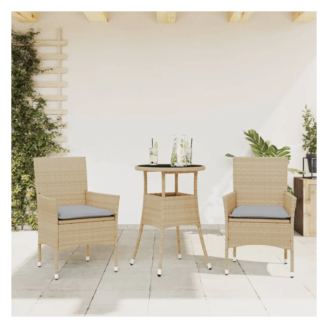 Cet ensemble de salle à manger de jardin est un excellent choix pour les repas en plein air ou pour vous détendre dans le jardin, dans l'arrière-cour ou sur la terrasse. Matériau durable : la résine tressée, également connue sous le nom de poly rotin, est un matériau synthétique solide et nécessitant peu d'entretien qui ressemble au rotin naturel. Il est léger, facile à nettoyer et couramment utilisé pour les meubles d'extérieur en raison de sa durabilité et de ses propriétés de résistance aux intempéries.Expérience d'assise confortable : cet ensemble de meubles d'extérieur, doté de coussins épais, offre une expérience d'assise confortable.Housse amovible et lavable : ces coussins de siège sont dotés de housses amovibles pour un lavage et un entretien faciles.Dessus en verre : le dessus de la table d'extérieur est fabriqué en verre trempé solide et durable, ce qui le rend facile à nettoyer avec un chiffon humide et ajoute une touche d'élégance à votre espace extérieur. Bon à savoir :Pour que vos meubles d'extérieur restent beaux, nous vous recommandons de les protéger avec une housse imperméable.