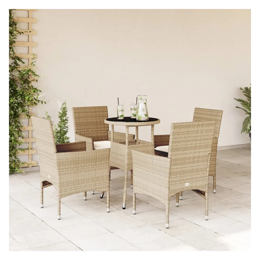 Cet ensemble de salle à manger de jardin est un excellent choix pour les repas en plein air ou pour vous détendre dans le jardin, dans l'arrière-cour ou sur la terrasse. Matériau durable : la résine tressée, également connue sous le nom de poly rotin, est un matériau synthétique solide et nécessitant peu d'entretien qui ressemble au rotin naturel. Il est léger, facile à nettoyer et couramment utilisé pour les meubles d'extérieur en raison de sa durabilité et de ses propriétés de résistance aux intempéries.Expérience d'assise confortable : cet ensemble de meubles d'extérieur, doté de coussins épais, offre une expérience d'assise confortable.Housse amovible et lavable : ces coussins de siège sont dotés de housses amovibles pour un lavage et un entretien faciles.Dessus en verre : le dessus de la table d'extérieur est fabriqué en verre trempé solide et durable, ce qui le rend facile à nettoyer avec un chiffon humide et ajoute une touche d'élégance à votre espace extérieur. Bon à savoir :Pour que vos meubles d'extérieur restent beaux, nous vous recommandons de les protéger avec une housse imperméable.