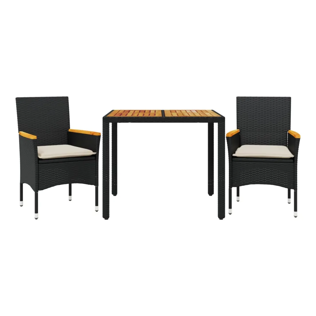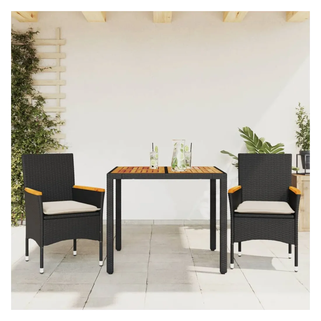 Cet ensemble de salle à manger de jardin est un excellent choix pour les repas en plein air ou pour vous détendre dans le jardin, dans l'arrière-cour ou sur la terrasse. Matériau durable : la résine tressée, également connue sous le nom de poly rotin, est un matériau synthétique solide et nécessitant peu d'entretien qui ressemble au rotin naturel. Il est léger, facile à nettoyer et couramment utilisé pour les meubles d'extérieur en raison de sa durabilité et de ses propriétés de résistance aux intempéries.Expérience d'assise confortable : cet ensemble de meubles d'extérieur, doté de coussins épais, offre une expérience d'assise confortable.Housse amovible et lavable : ces coussins de siège sont dotés de housses amovibles pour un lavage et un entretien faciles.Dessus stable et facile à nettoyer : cette table de jardin a un dessus en bois d'acacia robuste, durable et facile à nettoyer avec un chiffon humide. Bon à savoir :Pour que vos meubles d'extérieur restent beaux, nous vous recommandons de les protéger avec une housse imperméable.