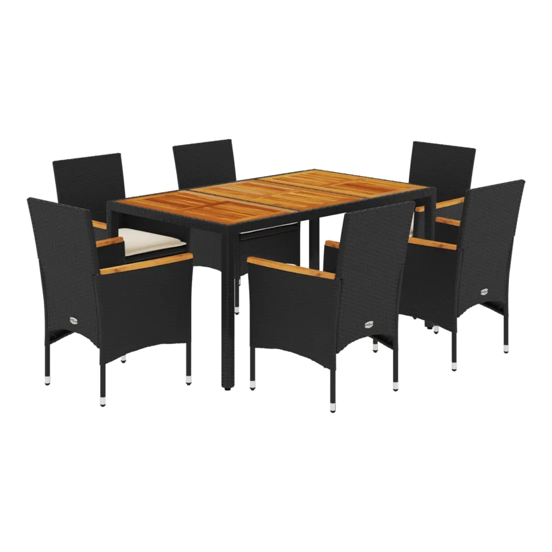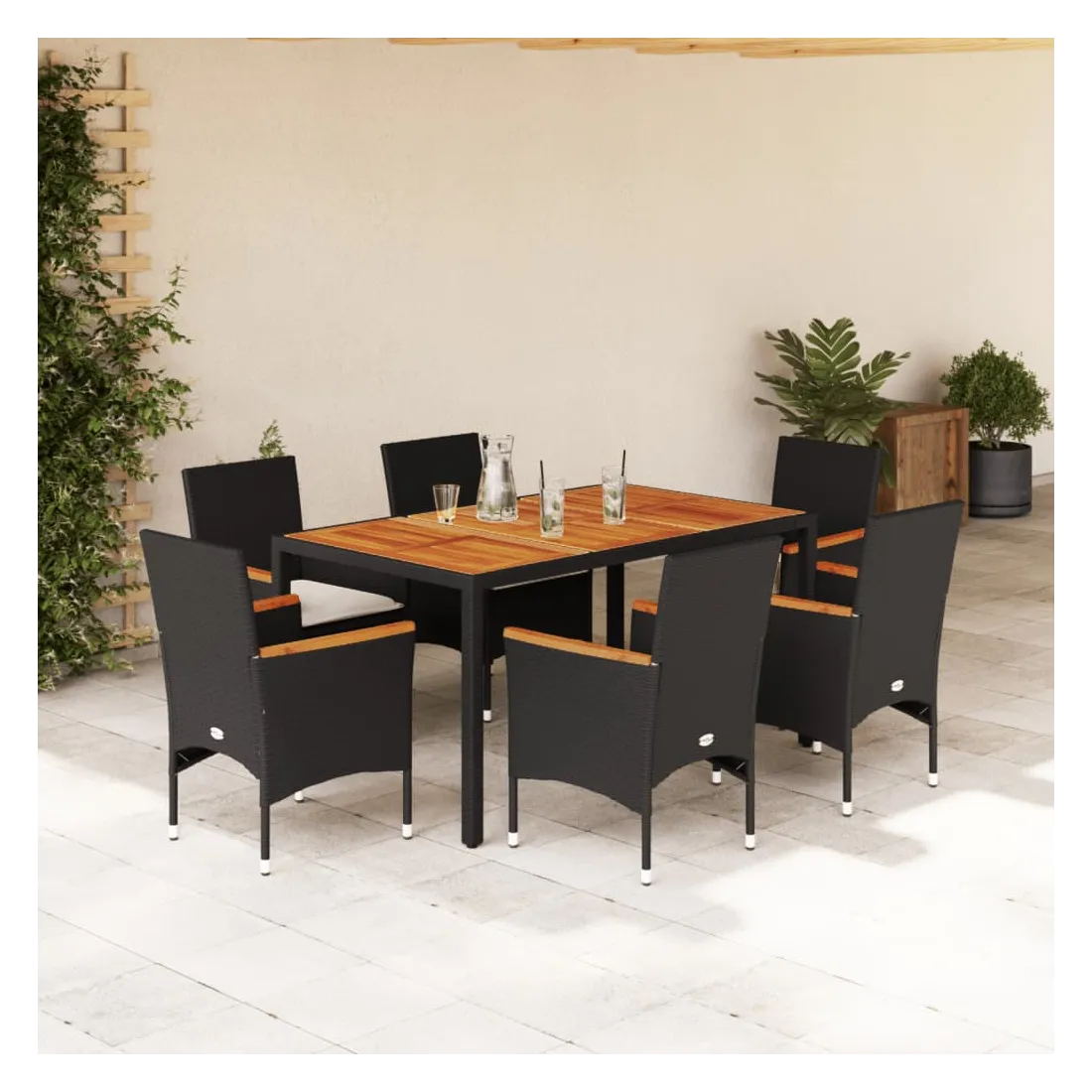 Cet ensemble de salle à manger de jardin est un excellent choix pour les repas en plein air ou pour vous détendre dans le jardin, dans l'arrière-cour ou sur la terrasse. Matériau durable : la résine tressée, également connue sous le nom de poly rotin, est un matériau synthétique solide et nécessitant peu d'entretien qui ressemble au rotin naturel. Il est léger, facile à nettoyer et couramment utilisé pour les meubles d'extérieur en raison de sa durabilité et de ses propriétés de résistance aux intempéries.Expérience d'assise confortable : cet ensemble de meubles d'extérieur, doté de coussins épais, offre une expérience d'assise confortable.Housse amovible et lavable : ces coussins de siège sont dotés de housses amovibles pour un lavage et un entretien faciles.Dessus stable et facile à nettoyer : cette table de jardin a un dessus en bois d'acacia robuste, durable et facile à nettoyer avec un chiffon humide. Bon à savoir :Pour que vos meubles d'extérieur restent beaux, nous vous recommandons de les protéger avec une housse imperméable.