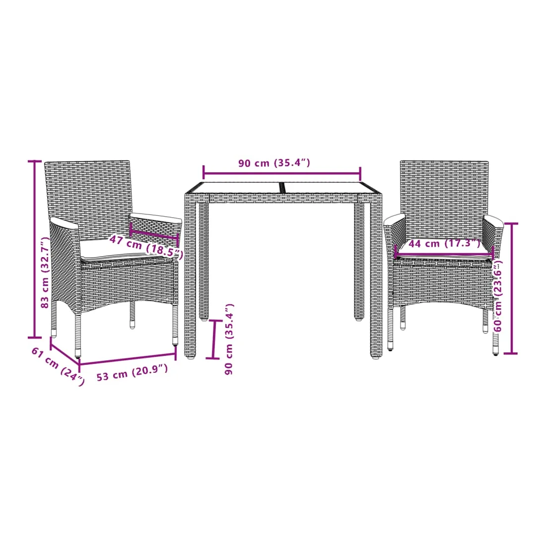 Cet ensemble de salle à manger de jardin est un excellent choix pour les repas en plein air ou pour vous détendre dans le jardin, dans l'arrière-cour ou sur la terrasse. Matériau durable : la résine tressée, également connue sous le nom de poly rotin, est un matériau synthétique solide et nécessitant peu d'entretien qui ressemble au rotin naturel. Il est léger, facile à nettoyer et couramment utilisé pour les meubles d'extérieur en raison de sa durabilité et de ses propriétés de résistance aux intempéries.Expérience d'assise confortable : cet ensemble de meubles d'extérieur, doté de coussins épais, offre une expérience d'assise confortable.Housse amovible et lavable : ces coussins de siège sont dotés de housses amovibles pour un lavage et un entretien faciles.Dessus en verre : le dessus de la table d'extérieur est fabriqué en verre trempé solide et durable, ce qui le rend facile à nettoyer avec un chiffon humide et ajoute une touche d'élégance à votre espace extérieur. Bon à savoir :Pour que vos meubles d'extérieur restent beaux, nous vous recommandons de les protéger avec une housse imperméable.