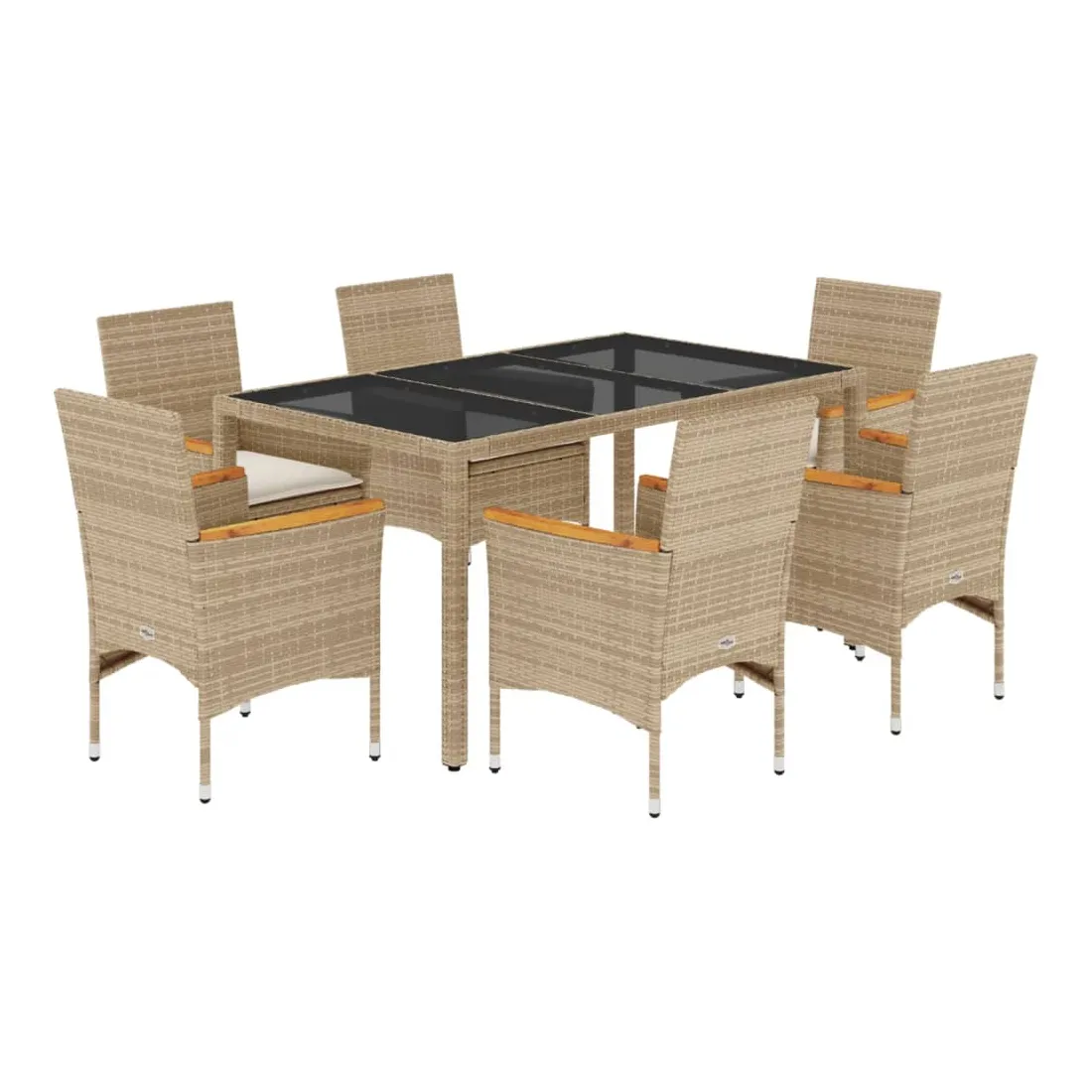 Ensemble à manger de jardin et coussins 7 pcs beige rotin verre