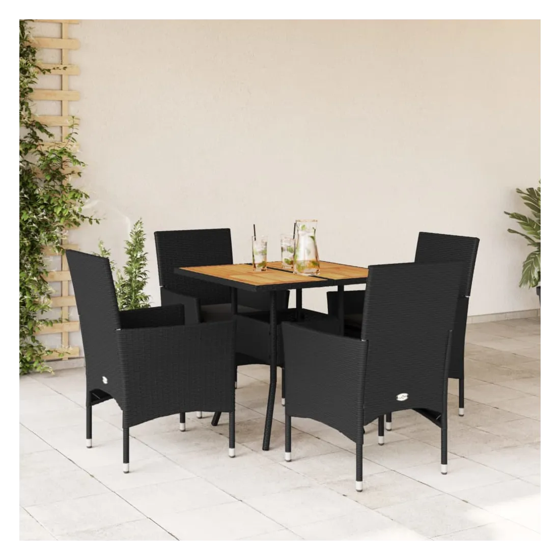 Cet ensemble de salle à manger de jardin est un excellent choix pour les repas en plein air ou pour vous détendre dans le jardin, dans l'arrière-cour ou sur la terrasse. Matériau durable : la résine tressée, également connue sous le nom de poly rotin, est un matériau synthétique solide et nécessitant peu d'entretien qui ressemble au rotin naturel. Il est léger, facile à nettoyer et couramment utilisé pour les meubles d'extérieur en raison de sa durabilité et de ses propriétés de résistance aux intempéries.Expérience d'assise confortable : cet ensemble de meubles d'extérieur, doté de coussins épais, offre une expérience d'assise confortable.Housse amovible et lavable : ces coussins de siège sont dotés de housses amovibles pour un lavage et un entretien faciles.Dessus stable et facile à nettoyer : cette table de jardin a un dessus en bois d'acacia robuste, durable et facile à nettoyer avec un chiffon humide. Bon à savoir :Pour que vos meubles d'extérieur restent beaux, nous vous recommandons de les protéger avec une housse imperméable.