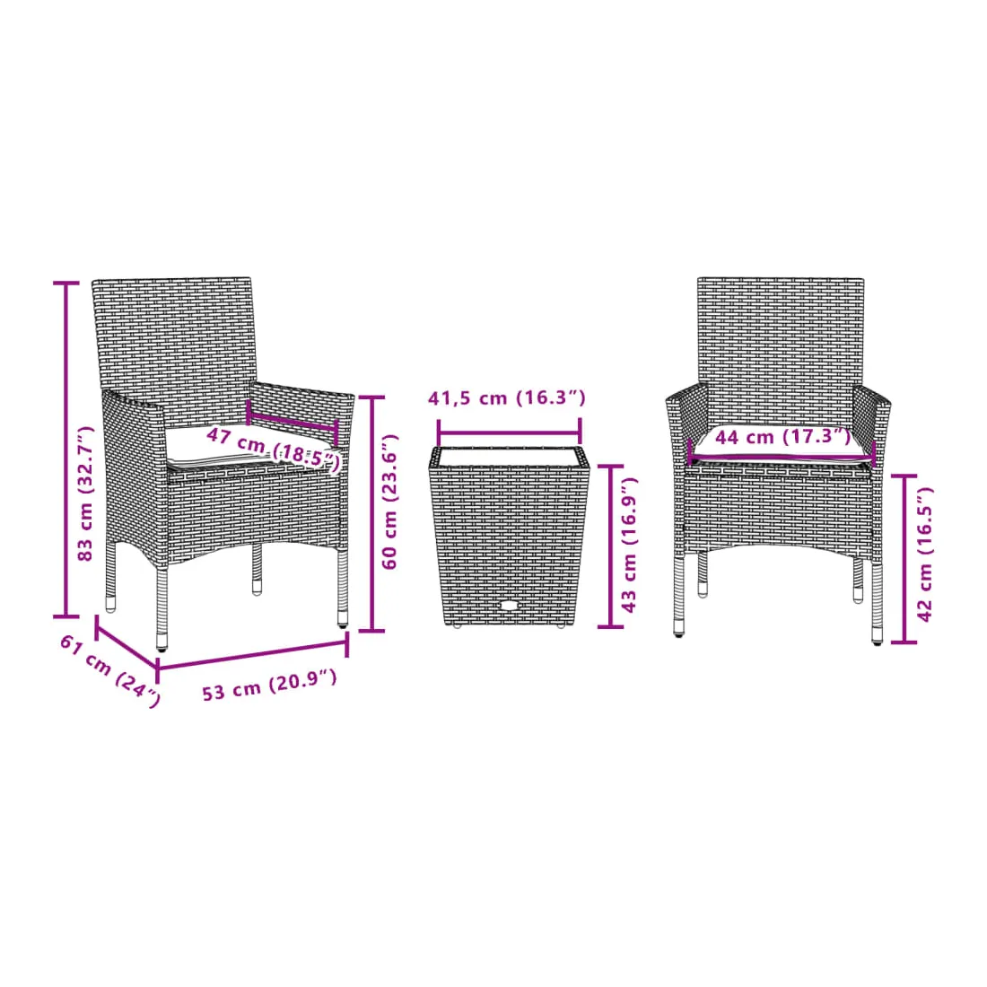 Savourez une tasse de café ou discutez avec votre famille et vos amis dans le jardin, l'arrière-cour ou sur le balcon avec cet ensemble de bistro confortable ! Matériau durable : la résine tressée, également connue sous le nom de poly rotin, est un matériau synthétique solide et nécessitant peu d'entretien qui ressemble au rotin naturel. Il est léger, facile à nettoyer et couramment utilisé pour les meubles d'extérieur en raison de sa durabilité et de ses propriétés de résistance aux intempéries.Expérience d'assise confortable : cet ensemble de meubles d'extérieur, doté de coussins épais, offre une expérience d'assise confortable.Housse amovible et lavable : ces coussins de siège sont dotés de housses amovibles pour un lavage et un entretien faciles.Dessus en verre : le dessus de la table d'extérieur est fabriqué en verre trempé solide et durable, ce qui le rend facile à nettoyer avec un chiffon humide et ajoute une touche d'élégance à votre espace extérieur. Bon à savoir :Pour que vos meubles d'extérieur restent beaux, nous vous recommandons de les protéger avec une housse imperméable.