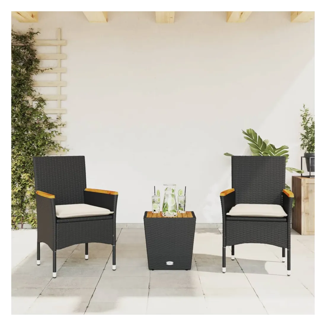 Savourez une tasse de café ou discutez avec votre famille et vos amis dans le jardin, l'arrière-cour ou sur le balcon avec cet ensemble de bistro confortable ! Matériau durable : la résine tressée, également connue sous le nom de poly rotin, est un matériau synthétique solide et nécessitant peu d'entretien qui ressemble au rotin naturel. Il est léger, facile à nettoyer et couramment utilisé pour les meubles d'extérieur en raison de sa durabilité et de ses propriétés de résistance aux intempéries.Expérience d'assise confortable : cet ensemble de meubles d'extérieur, doté de coussins épais, offre une expérience d'assise confortable.Housse amovible et lavable : ces coussins de siège sont dotés de housses amovibles pour un lavage et un entretien faciles.Dessus en verre : le dessus de la table d'extérieur est fabriqué en verre trempé solide et durable, ce qui le rend facile à nettoyer avec un chiffon humide et ajoute une touche d'élégance à votre espace extérieur. Bon à savoir :Pour que vos meubles d'extérieur restent beaux, nous vous recommandons de les protéger avec une housse imperméable.