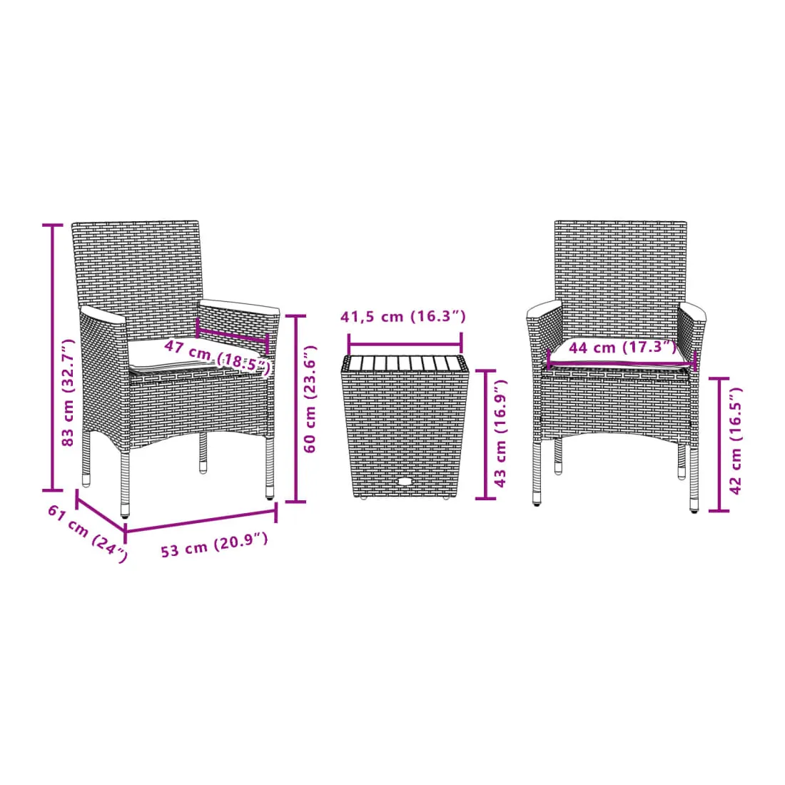 - Dimensions : 41,5 x 41,5 x 43 cm (L x l x H)