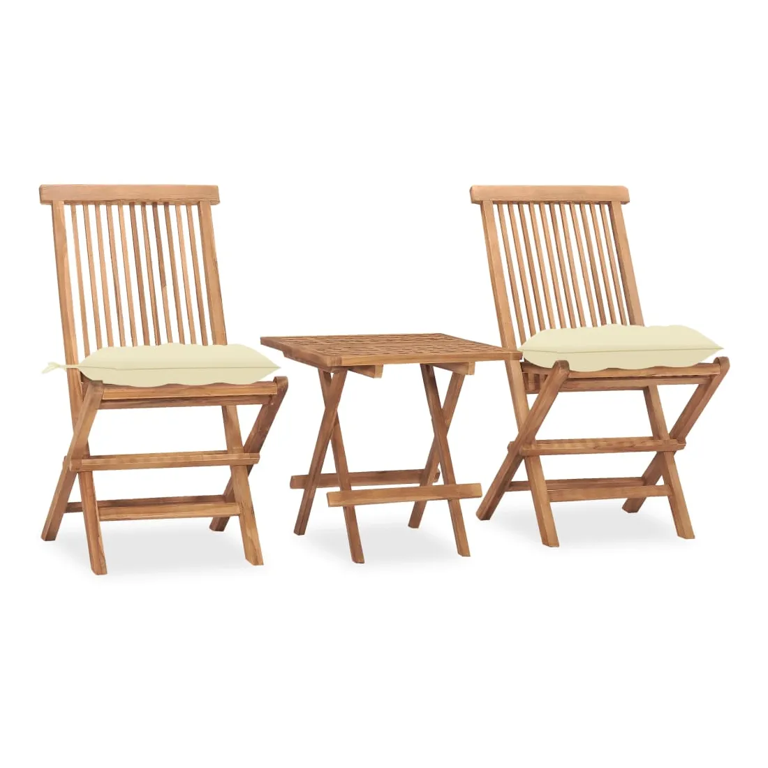 Ensemble à manger d'extérieur pliable avec coussin 3 pcs Teck