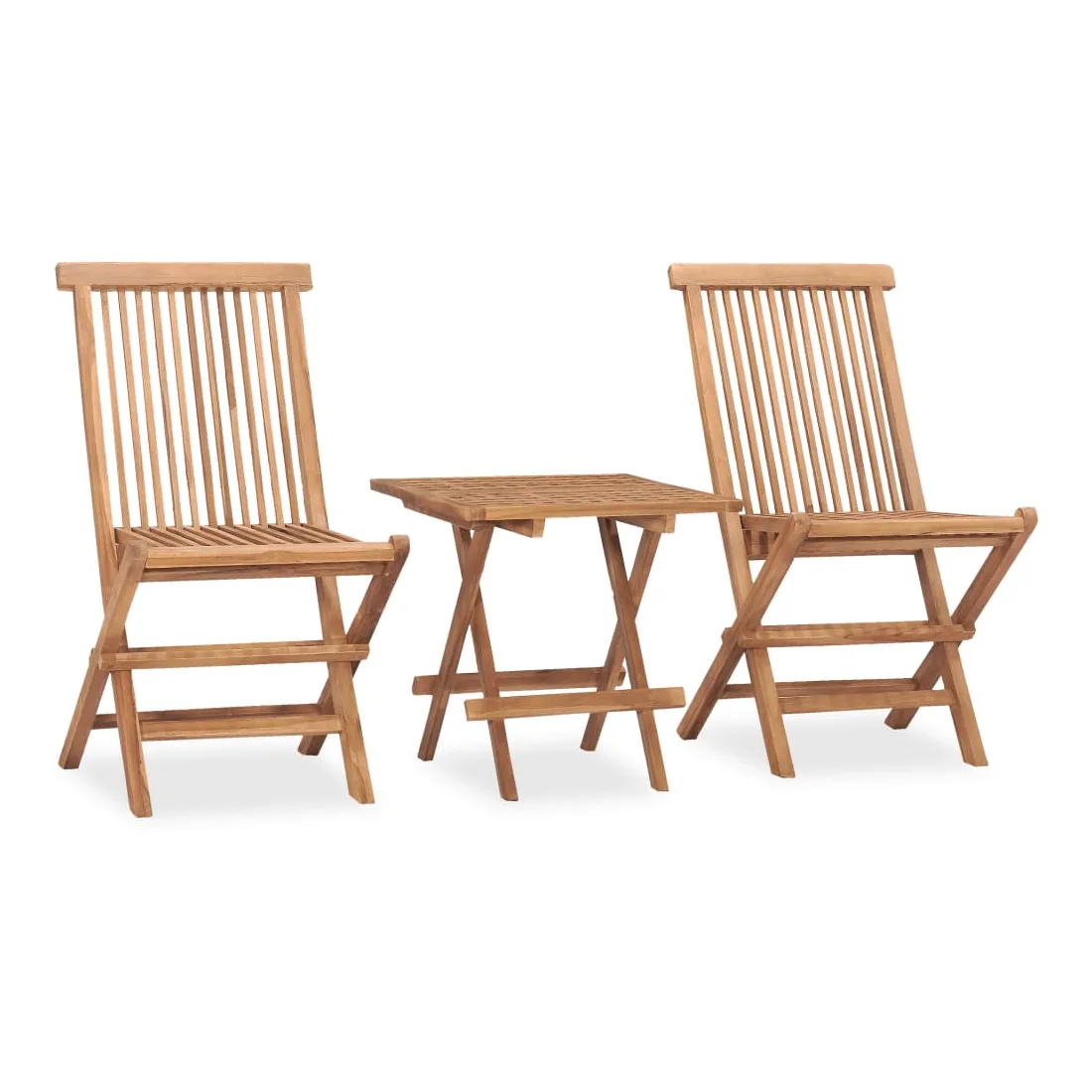 vidaXLCet ensemble de salle à manger d'extérieur en bois est spécialement conçu pour être le point de mire de votre jardin, terrasse ou patio. Fabriquée en bois dur de teck extrêmement durable, cette pièce de meuble en teck a été chevronnée, séchée au four puis finement poncée pour lui donner un aspect très lisse. Le bois de teck est connu pour sa résistance exceptionnelle aux intempéries, ce qui le rend bien plus adapté aux meubles de jardin que tout autre type de bois. Le bois de teck est le choix idéal si vous souhaitez acheter une pièce de meubles de jardin durable. La table de salle à manger et les chaises peuvent être repliées pour économiser de l’espace lorsqu'elles ne sont pas utilisées. Le coussin inclus est plus qu'un supplément pratique; il a également une fonction décorative.