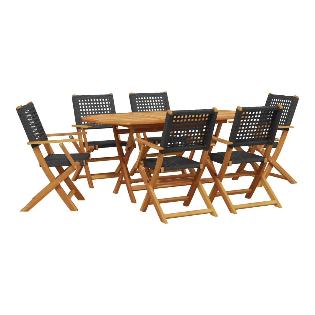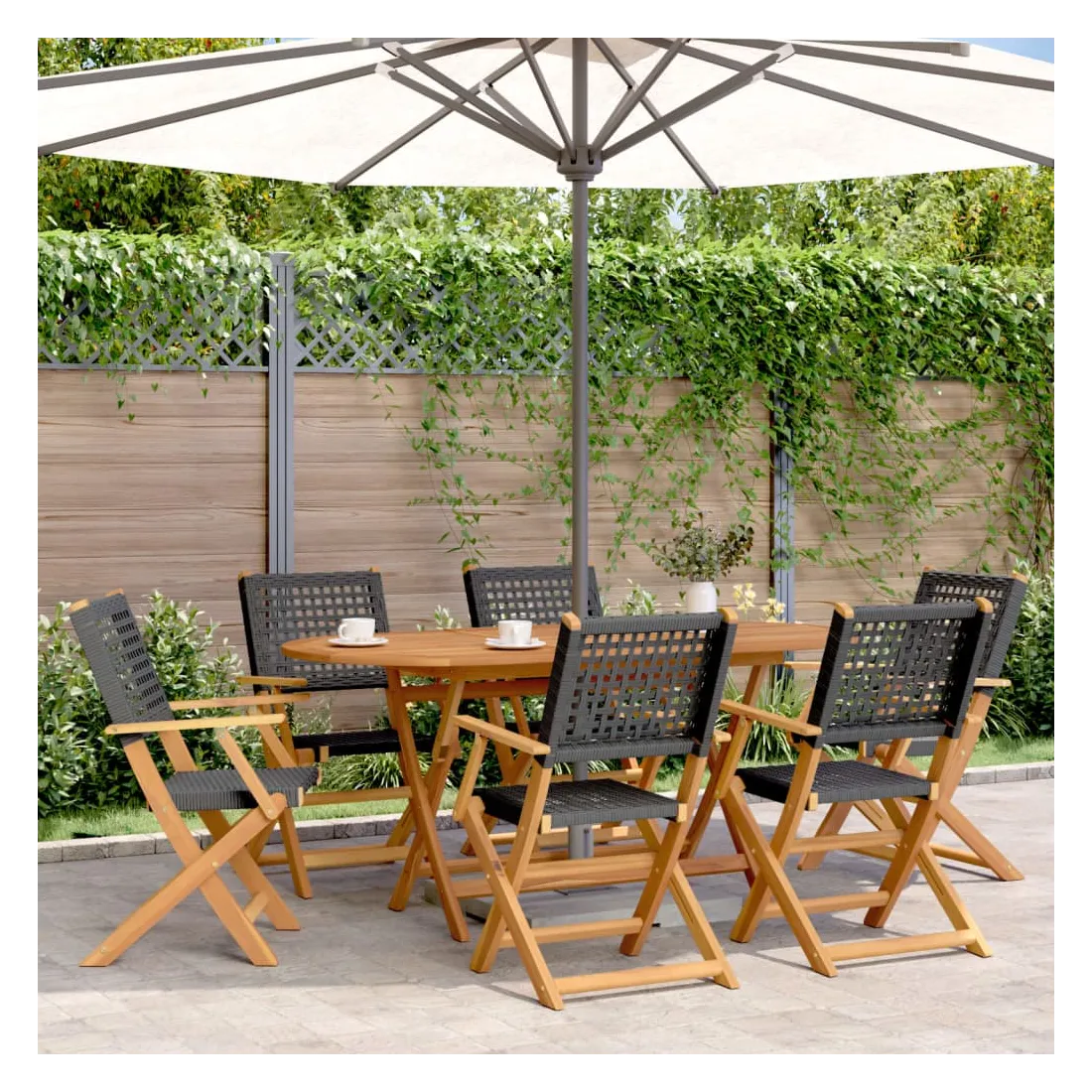 Cet ensemble de salle à manger de jardin est un excellent choix pour les repas en plein air ou pour vous détendre dans le jardin, dans l'arrière-cour ou sur la terrasse. Robuste et stable : le bois d'acacia massif est connu pour sa solidité et sa durabilité. Ses couleurs variées et ses grains uniques lui confèrent un aspect attrayant. Sa stabilité et sa résistance aux intempéries en font un matériau idéal pour la fabrication de meubles d'intérieur et d'extérieur.Matériau durable : la résine tressée, également connue sous le nom de poly rotin, est un matériau synthétique solide et nécessitant peu d'entretien qui ressemble au rotin naturel. Il est léger, facile à nettoyer et couramment utilisé pour les meubles d'extérieur en raison de sa durabilité et de ses propriétés de résistance aux intempéries.Conception pratique : la main courante en bois, pratique et plate, vous permet de poser vos mains dessus tout en profitant d'un moment en plein air.Dessus de table robuste : la table d'extérieur offre un excellent support pour accueillir vos boissons, collations, corbeilles de fruits et vos décorations préférées.Design pliable : la table et les chaises de salle à manger d'extérieur peuvent être facilement repliées lorsqu'elles ne sont pas utilisées pour faciliter le rangement et le transport. Bon à savoir :Pour que vos meubles d'extérieur restent beaux, nous vous recommandons de les protéger avec une housse imperméable.