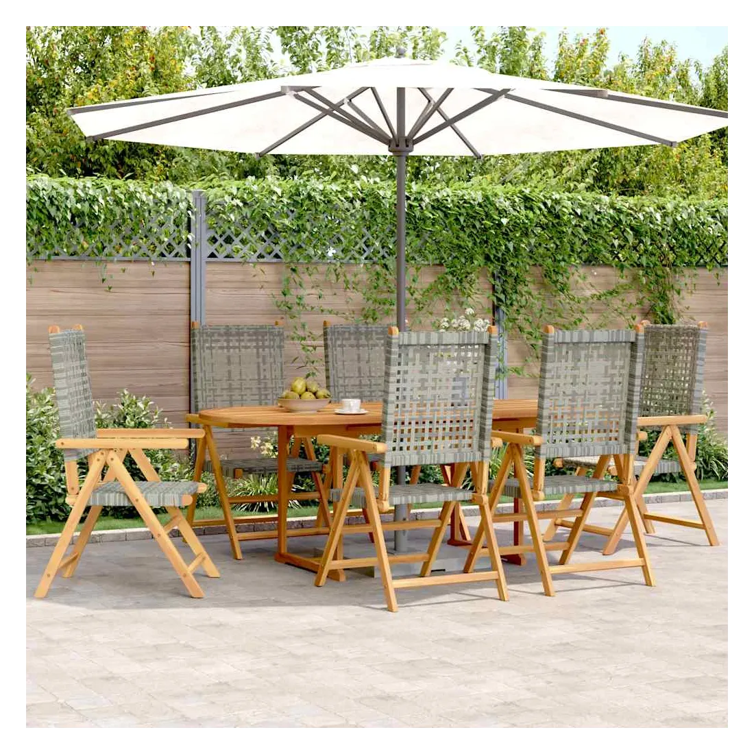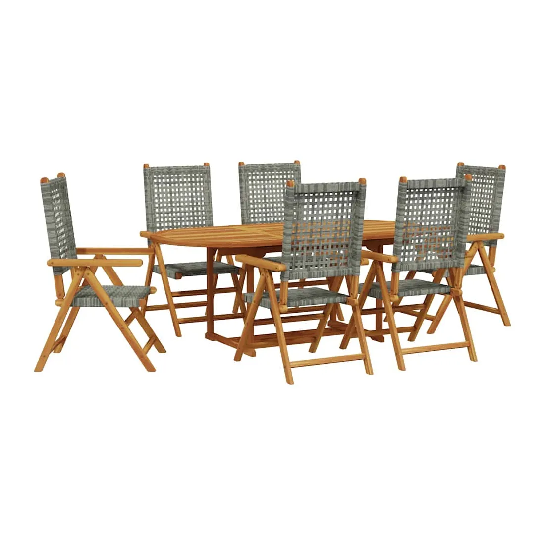 Cet ensemble de salle à manger de jardin est un excellent choix pour les repas en plein air ou pour vous détendre dans le jardin, dans l'arrière-cour ou sur la terrasse. Robuste et stable : le bois d'acacia massif est connu pour sa solidité et sa durabilité. Ses couleurs variées et ses grains uniques lui confèrent un aspect attrayant. Sa stabilité et sa résistance aux intempéries en font un matériau idéal pour la fabrication de meubles d'intérieur et d'extérieur.Matériau durable : la résine tressée, également connue sous le nom de poly rotin, est un matériau synthétique solide et nécessitant peu d'entretien qui ressemble au rotin naturel. Il est léger, facile à nettoyer et couramment utilisé pour les meubles d'extérieur en raison de sa durabilité et de ses propriétés de résistance aux intempéries.Fonction d'inclinaison : le siège de jardin est spécialement conçu avec une fonction d'inclinaison afin que vous puissiez régler le dossier selon votre confort.Dessus de table robuste : la table d'extérieur offre un excellent support pour accueillir vos boissons, collations, corbeilles de fruits et vos décorations préférées.Fonction pratique : les chaises à manger d’extérieur peuvent être repliées pour gagner de la place lorsqu’elles ne sont pas utilisées, tandis que la table de jardin peut être étendue lorsque de l'espace supplémentaire est nécessaire. Bon à savoir :Pour que vos meubles d'extérieur restent beaux, nous vous recommandons de les protéger avec une housse imperméable.