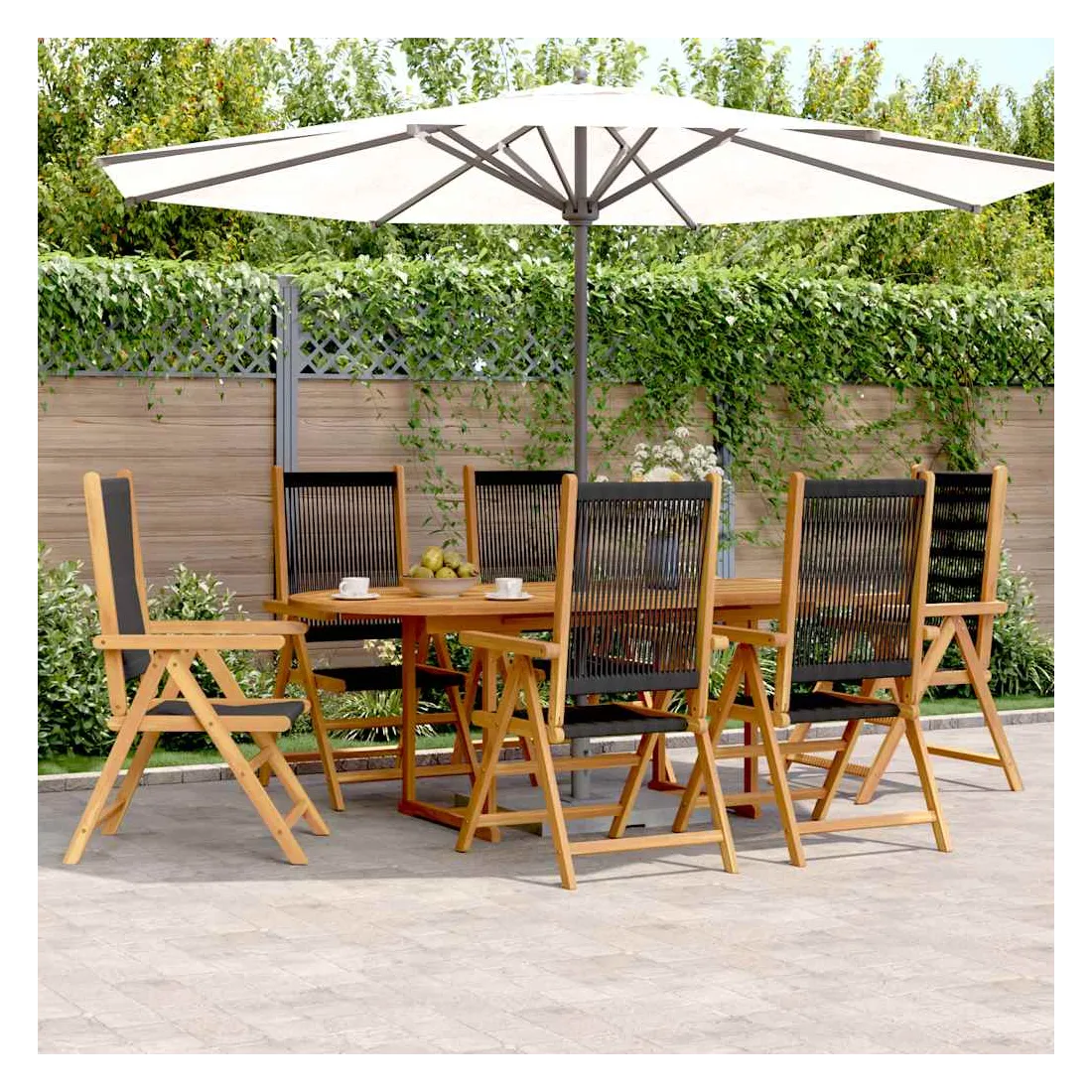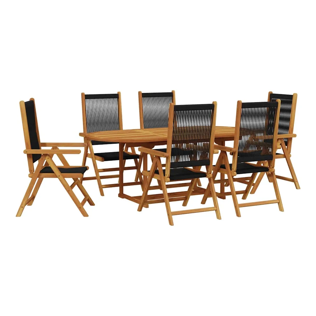 Ensemble à Manger de jardin 7pcs noir polypropylène bois massif