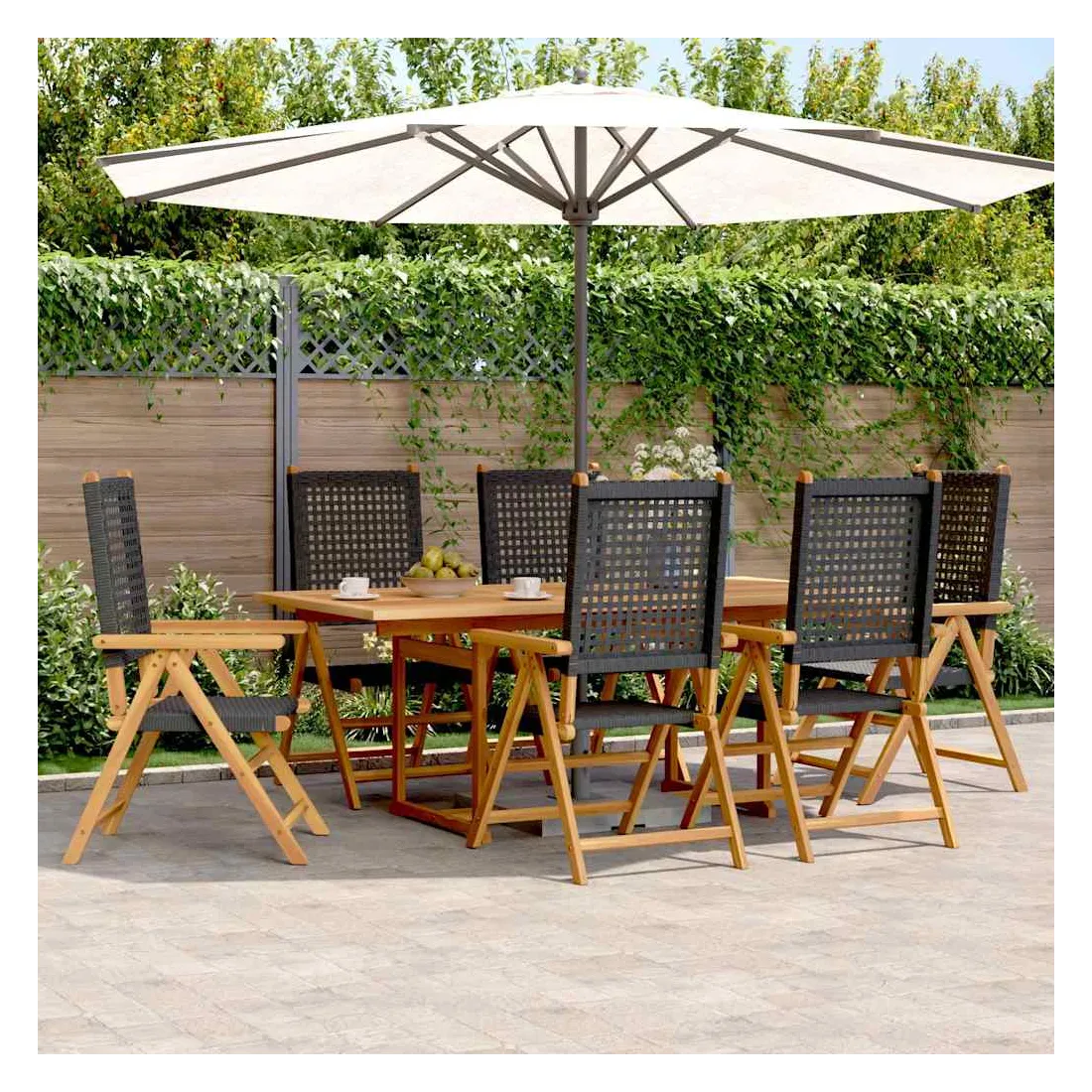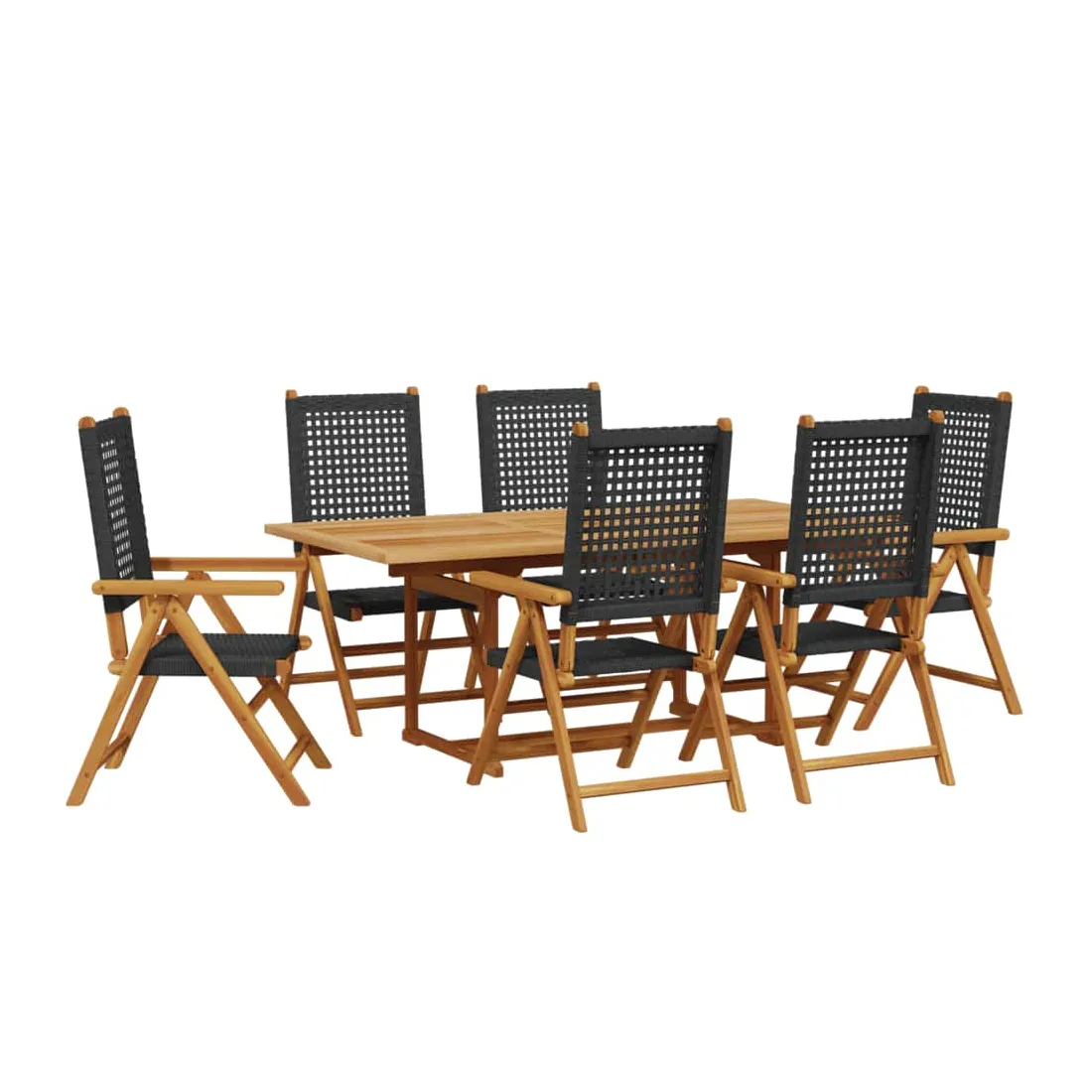 Cet ensemble de salle à manger de jardin est un excellent choix pour les repas en plein air ou pour vous détendre dans le jardin, dans l'arrière-cour ou sur la terrasse. Robuste et stable : le bois d'acacia massif est connu pour sa solidité et sa durabilité. Ses couleurs variées et ses grains uniques lui confèrent un aspect attrayant. Sa stabilité et sa résistance aux intempéries en font un matériau idéal pour la fabrication de meubles d'intérieur et d'extérieur.Matériau durable : la résine tressée, également connue sous le nom de poly rotin, est un matériau synthétique solide et nécessitant peu d'entretien qui ressemble au rotin naturel. Il est léger, facile à nettoyer et couramment utilisé pour les meubles d'extérieur en raison de sa durabilité et de ses propriétés de résistance aux intempéries.Fonction d'inclinaison : le siège de jardin est spécialement conçu avec une fonction d'inclinaison afin que vous puissiez régler le dossier selon votre confort.Dessus de table robuste : la table d'extérieur offre un excellent support pour accueillir vos boissons, collations, corbeilles de fruits et vos décorations préférées.Fonction pratique : les chaises à manger d’extérieur peuvent être repliées pour gagner de la place lorsqu’elles ne sont pas utilisées, tandis que la table de jardin peut être étendue lorsque de l'espace supplémentaire est nécessaire. Bon à savoir :Pour que vos meubles d'extérieur restent beaux, nous vous recommandons de les protéger avec une housse imperméable.