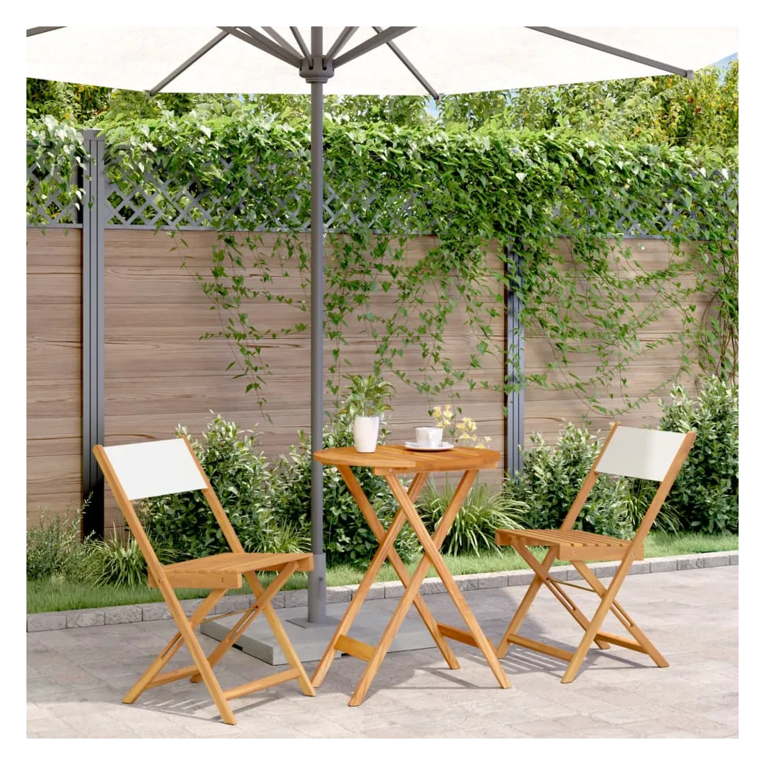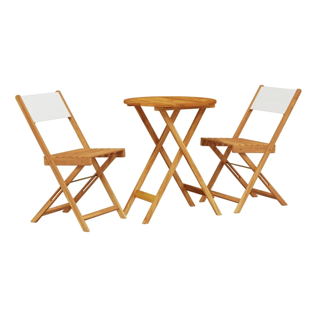 Savourez une tasse de café ou discutez avec votre famille et vos amis dans le jardin, l'arrière-cour ou sur le balcon avec cet ensemble de bistro ! Robuste et stable : le bois d'acacia massif est connu pour sa solidité et sa durabilité. Ses couleurs variées et ses grains uniques lui confèrent un aspect attrayant. Sa stabilité et sa résistance aux intempéries en font un matériau idéal pour la fabrication de meubles d'intérieur et d'extérieur.Conception pratique : la chaise d'extérieur ne comporte pas d'accoudoir, mais uniquement un dossier, ce qui vous permet d'être plus libre de vos mouvements tout en bénéficiant d'un grand confort.Dessus de table robuste : la table d'extérieur offre un excellent support pour accueillir vos boissons, collations, corbeilles de fruits et vos décorations préférées.Design pliable : la table et les chaises de salle à manger d'extérieur peuvent être facilement repliées lorsqu'elles ne sont pas utilisées pour faciliter le rangement et le transport. Bon à savoir :Pour que vos meubles d'extérieur restent beaux, nous vous recommandons de les protéger avec une housse imperméable.