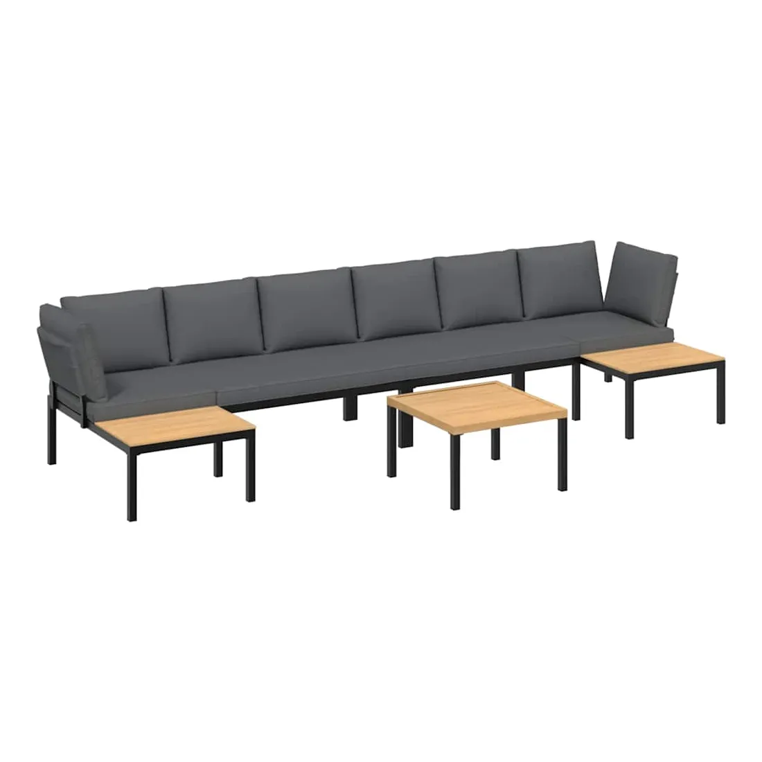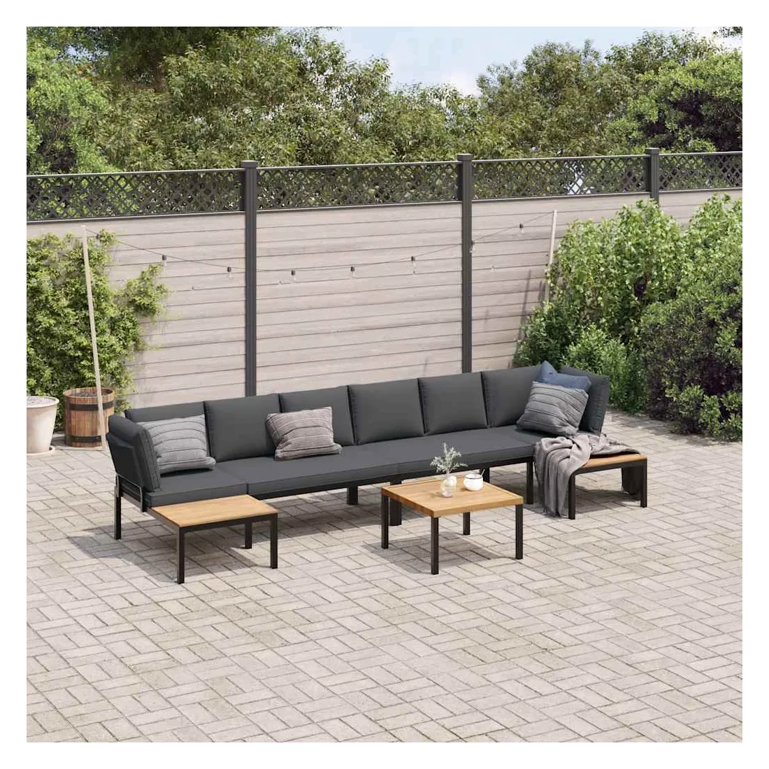 Cet ensemble de canapés de jardin est le complément parfait de votre arrière-cour, terrasse ou patio, offrant un espace confortable et accueillant pour discuter avec la famille et les amis ou simplement se détendre et profiter de l'extérieur. Durable et robuste : l'ensemble de canapés d'extérieur est fabriqué en aluminium, ce qui le rend résistant et durable.Dessus robuste : le dessus robuste de la table de patio est idéal pour placer vos boissons ou tout autre article dont vous avez besoin à portée de main.Expérience d'assise confortable : ce mobilier d'extérieur, doté de coussins épais, offre une expérience d'assise confortable. Housse amovible et lavable : ces coussins de siège sont dotés de housses amovibles pour un lavage et un entretien faciles.Conception modulaire : cet ensemble de meubles d'extérieur a une conception modulaire, ce qui le rend complètement flexible et facile à déplacer, afin que vous puissiez créer un agencement de meubles d'extérieur personnalisé. Bon à savoir :Pour que vos meubles d'extérieur restent beaux, nous vous recommandons de les protéger avec une housse imperméable.
