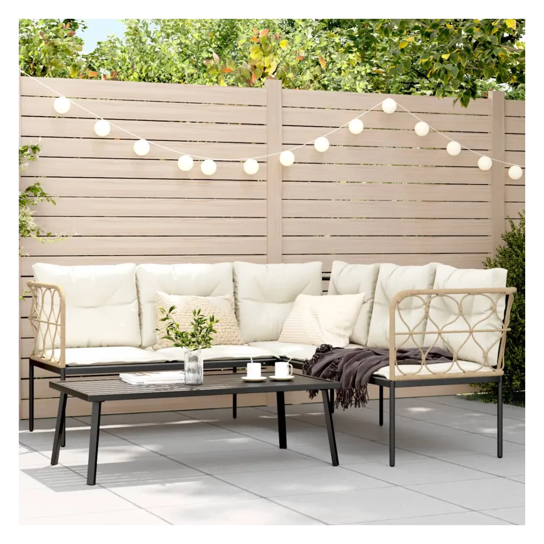 Cet ensemble de canapés de jardin est le complément parfait de votre jardin, terrasse ou patio, offrant un espace confortable et accueillant pour discuter avec la famille et les amis ou simplement se détendre et profiter de l'extérieur. Cadre robuste et stable : le cadre en acier enduit de poudre assure la solidité et la stabilité du meuble de jardin pour une utilisation quotidienne à l'extérieur.Durable et longue durée de vie : le tissu textilène est apprécié pour sa durabilité, résistance à l'eau et à la décoloration, facilité d'entretien et protection contre les rayons UV et la moisissure, ce qui en fait un choix idéal pour le meuble d'extérieur et les structures d'ombrage.Expérience d'assise confortable : ce mobilier d'extérieur, doté de coussins épais, offre une expérience d'assise confortable.Housse amovible et lavable : ces coussins de siège sont dotés de housses amovibles pour un lavage et un entretien faciles.Dessus robuste : le dessus robuste de la table de patio est idéal pour placer vos boissons ou tout autre article dont vous avez besoin à portée de main. Bon à savoir :Pour que vos meubles d'extérieur restent beaux, nous vous recommandons de les protéger avec une housse imperméable.