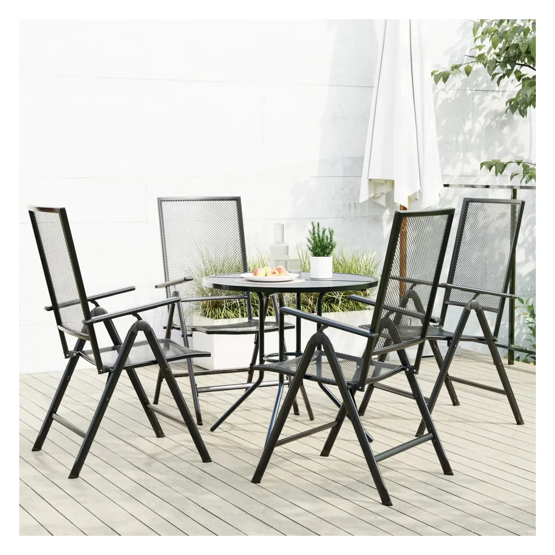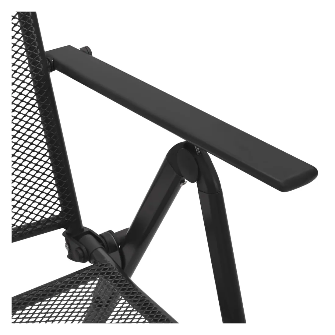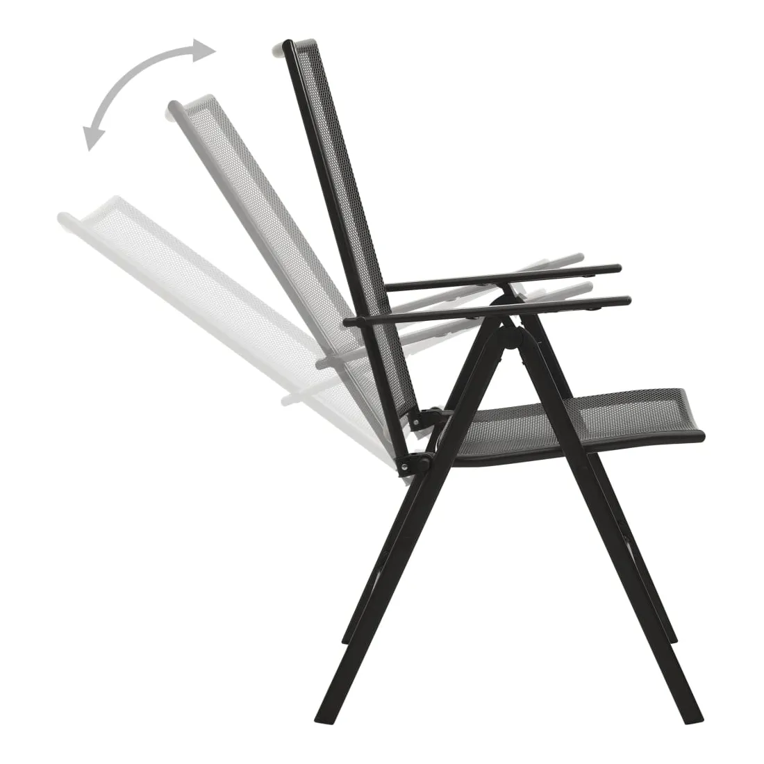 Cet ensemble de chaises de jardin avec un look élégant est un supplément frappant à votre espace de vie actuel, à l'extérieur ainsi qu'à l'intérieur. Acier enduit de poudre : cet ensemble de bar de jardin est fabriqué en acier enduit de poudre, un matériau exceptionnellement dur et solide. Elle offre robustesse et stabilité. Le revêtement en poudre de la surface de l'acier crée une couche protectrice contre la rouille, la corrosion et l'usure.Dossier réglable : les dossiers des chaises de jardin sont réglables en 6 positions afin que vous puissiez toujours trouver la position la plus confortable.Fonction pliable : la chaise de jardin est pliable, ce qui vous permet de la replier pour gagner de la place lorsque vous ne l'utilisez pas.Dessus de table en maille : le dessus de table en maille présente de jolis motifs et convient pour placer des boissons, de la nourriture et d'autres articles essentiels.Multifonctionnel : cet ensemble de chaises d'extérieur multifonctionnel présente une forme parfaite pour s'adapter à tous les environnements de votre maison. Il peut être utilisé dans la cuisine, la salle à manger, le salon, le patio, etc.