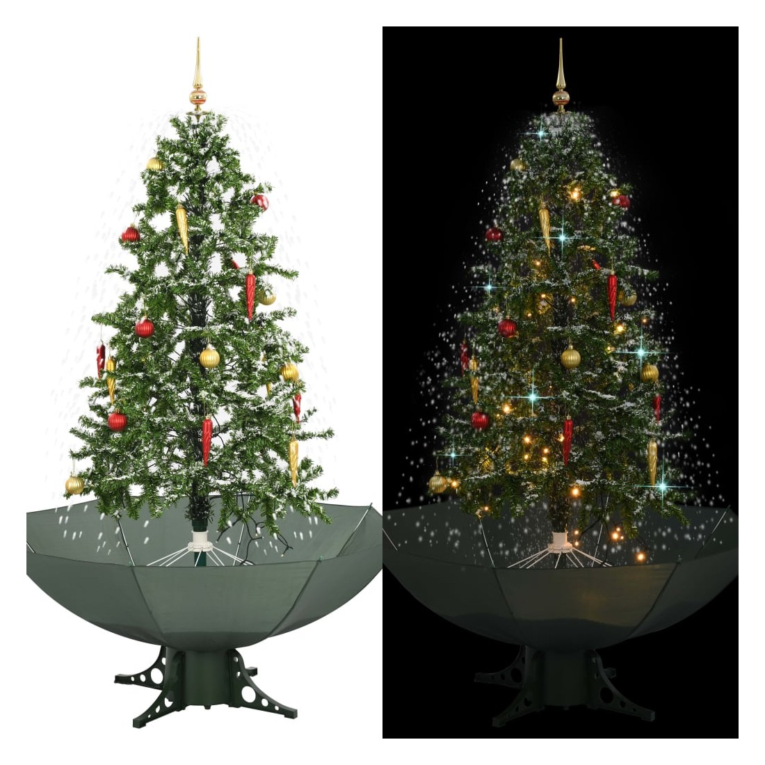 Arbre de Noël neigeux avec base de parapluie Vert 170 cm