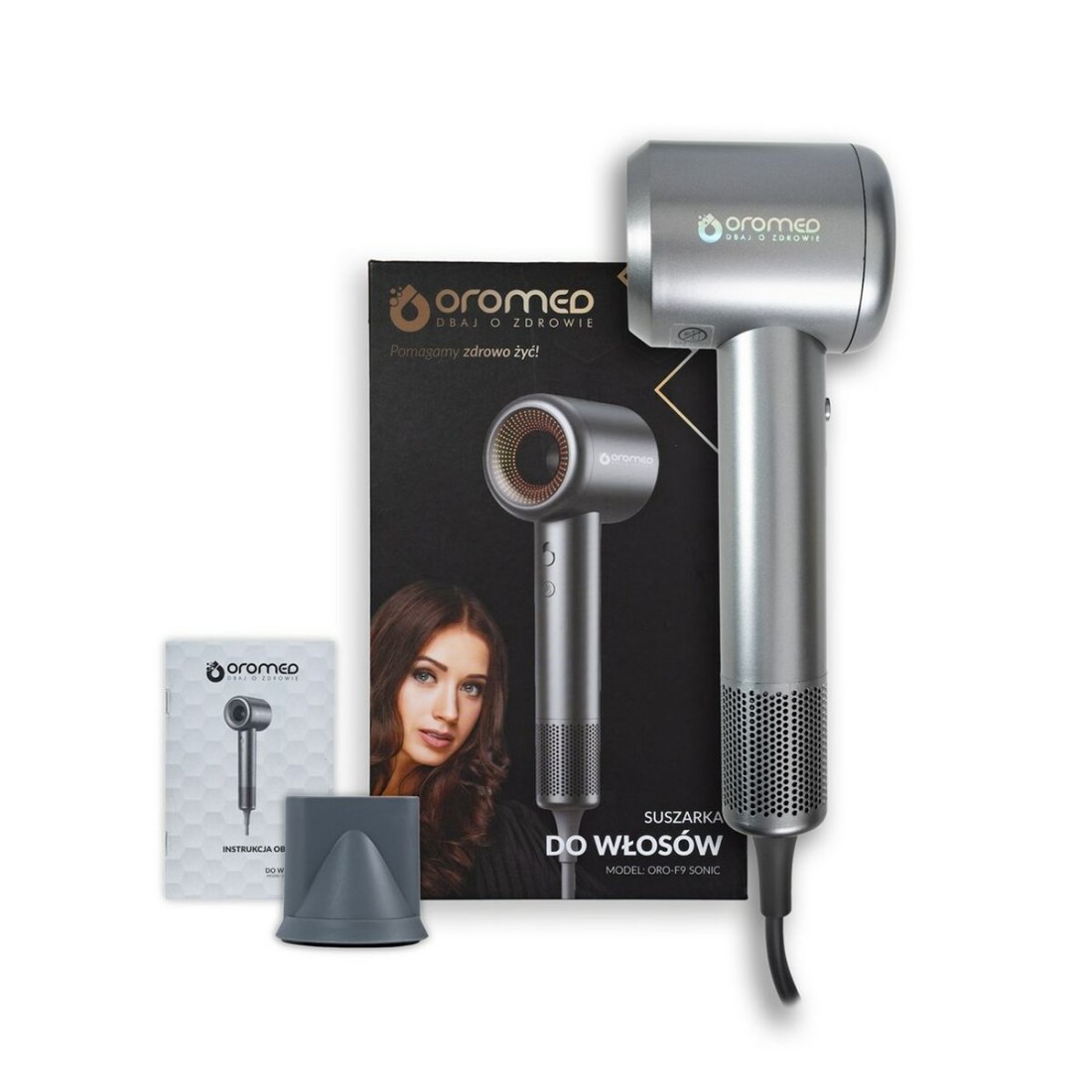 El secador de pelo Oromed ORO-F9 SONIC es un dispositivo diseñado para un secado eficiente y cómodo gracias a su potencia de 1600 W, que ofrece un flujo de aire potente y constante, ideal para un secado rápido y un peinado profesional en casa. Presenta un diseño elegante y moderno en tonos gris y plateado, que aportan un acabado sofisticado y resistente a su estructura. Este secador combina funcionalidad y estética, siendo adecuado para todo tipo de cabellos, desde los más finos hasta los más densos, facilitando un cuidado adecuado sin riesgo de daños por un uso prolongado. Su tamaño y peso equilibrados permiten un manejo cómodo y ergonómico que reduce la fatiga durante el uso. La simplicidad de su funcionamiento y la calidad de sus materiales garantizan durabilidad y fiabilidad, aspectos muy valorados por los usuarios en productos de cuidado personal. En resumen, el ORO-F9 SONIC de Oromed es un secador de pelo que combina potencia y diseño versátil, adaptándose a las necesidades cotidianas para un secado efectivo y profesional.